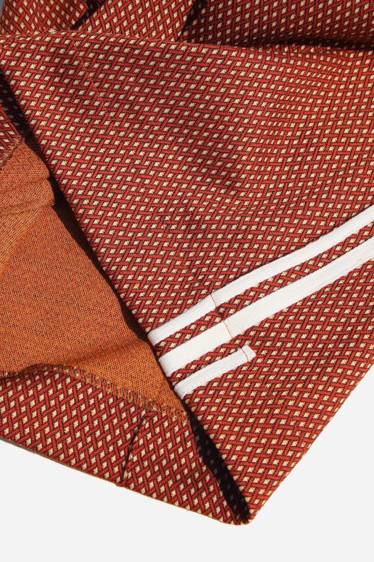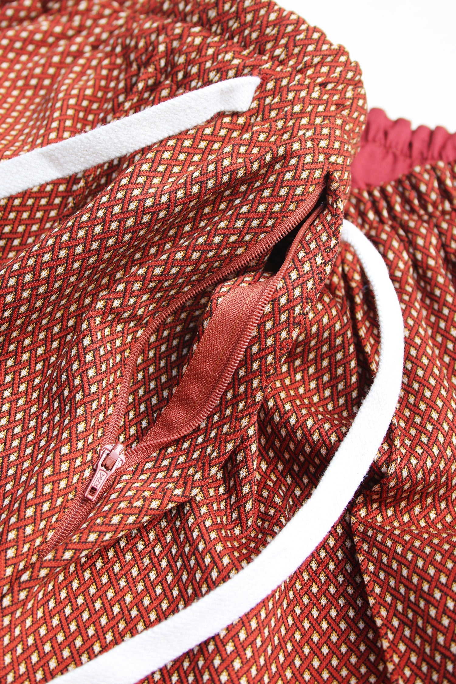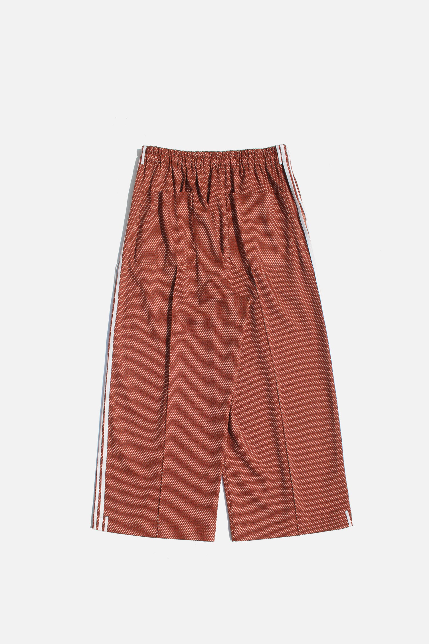 Wider pants by using lightweight cotton and polyester. Features on-and-off side-lines, soft fabric, vivid orange, slash pockets and rear pockets.