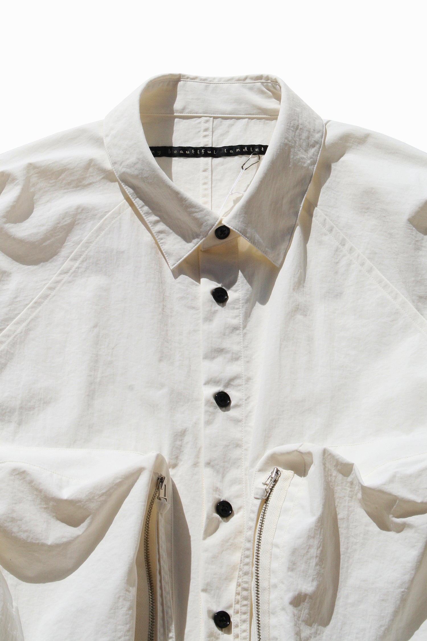 MY BEAUTIFUL LANDLET NYLON DYED TAFFETA BIG POCKET SHIRT - OFF WHITE
