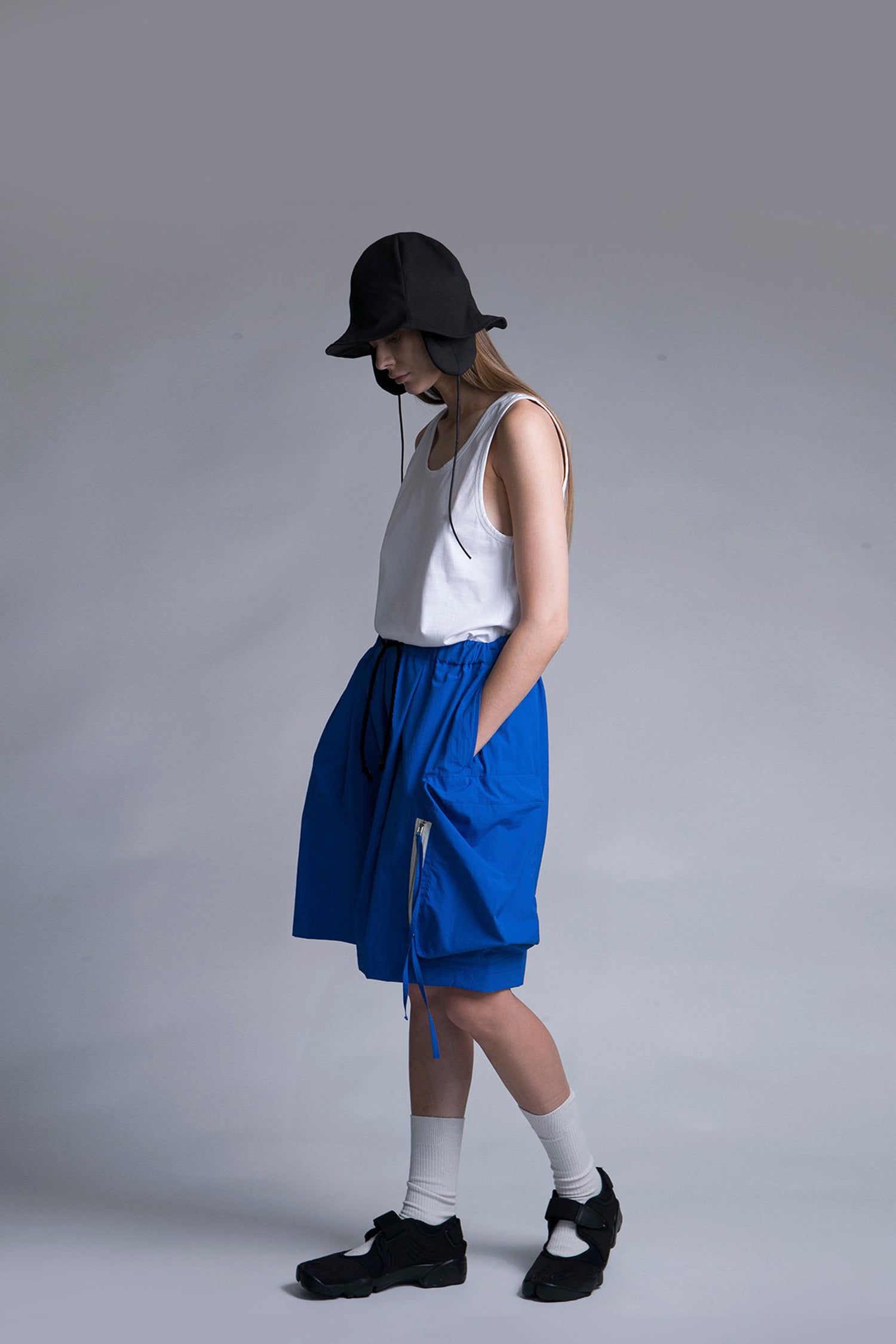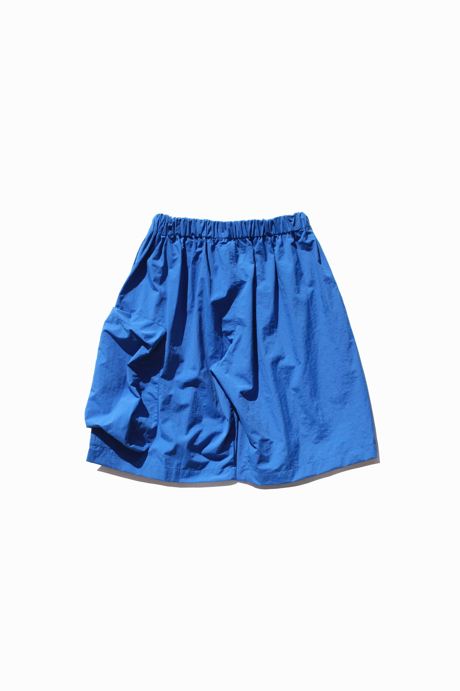 Taffeta wide shorts with a 3D pocket. It is made in a kind of cotton-like functional nylon with UV blocking, water repellency, and wind resistance for your summer parties. Deformed shapes in perfect balance, which has also been seen many times before.
