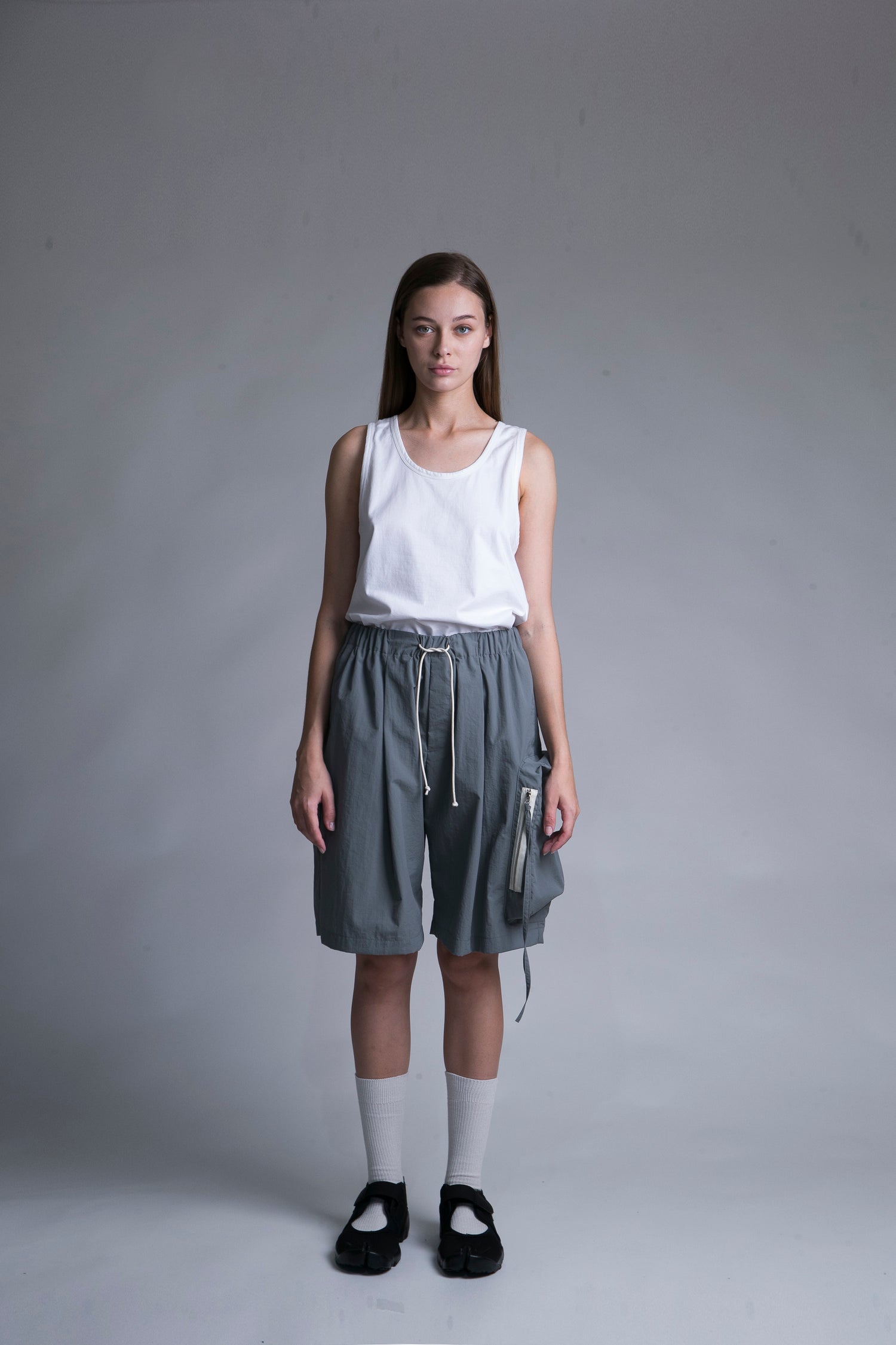 m.b.l定番のショートパンツです。コットンライクなナイロン100%のTAFFETA生地は紫外線ブロック・撥水性・防風が付与された機能性素材となります。コットンライクで適度なハリ感があり、マットな表情が特徴な素材です。薄手で涼しげな素材、夏に向けてもおすすめです。ユニセックスでの展開。同素材のbigポケットシャツとのセットアップもオススメです。こちらは、Gray。