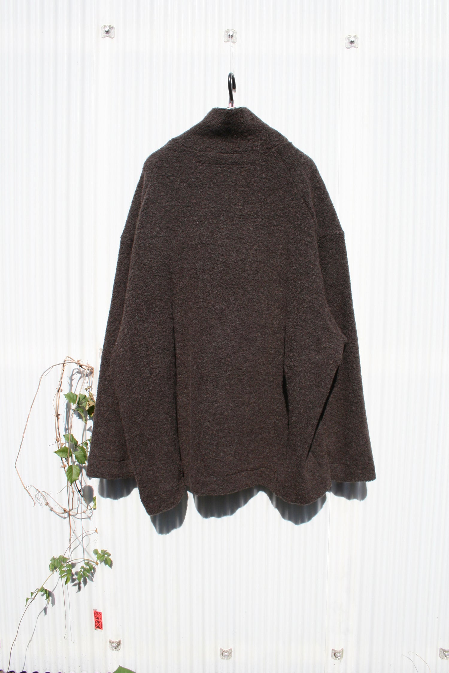 Loose fit high-neck sweatshirt in color brown of a certain kind of harmony and signal. It is composed by new, technical and elastic recycled wool in full of warm pile and loop, which provide comfortable thermal covering. In terms of performance, it’s fascinated by layering it inside of any oversized garments.