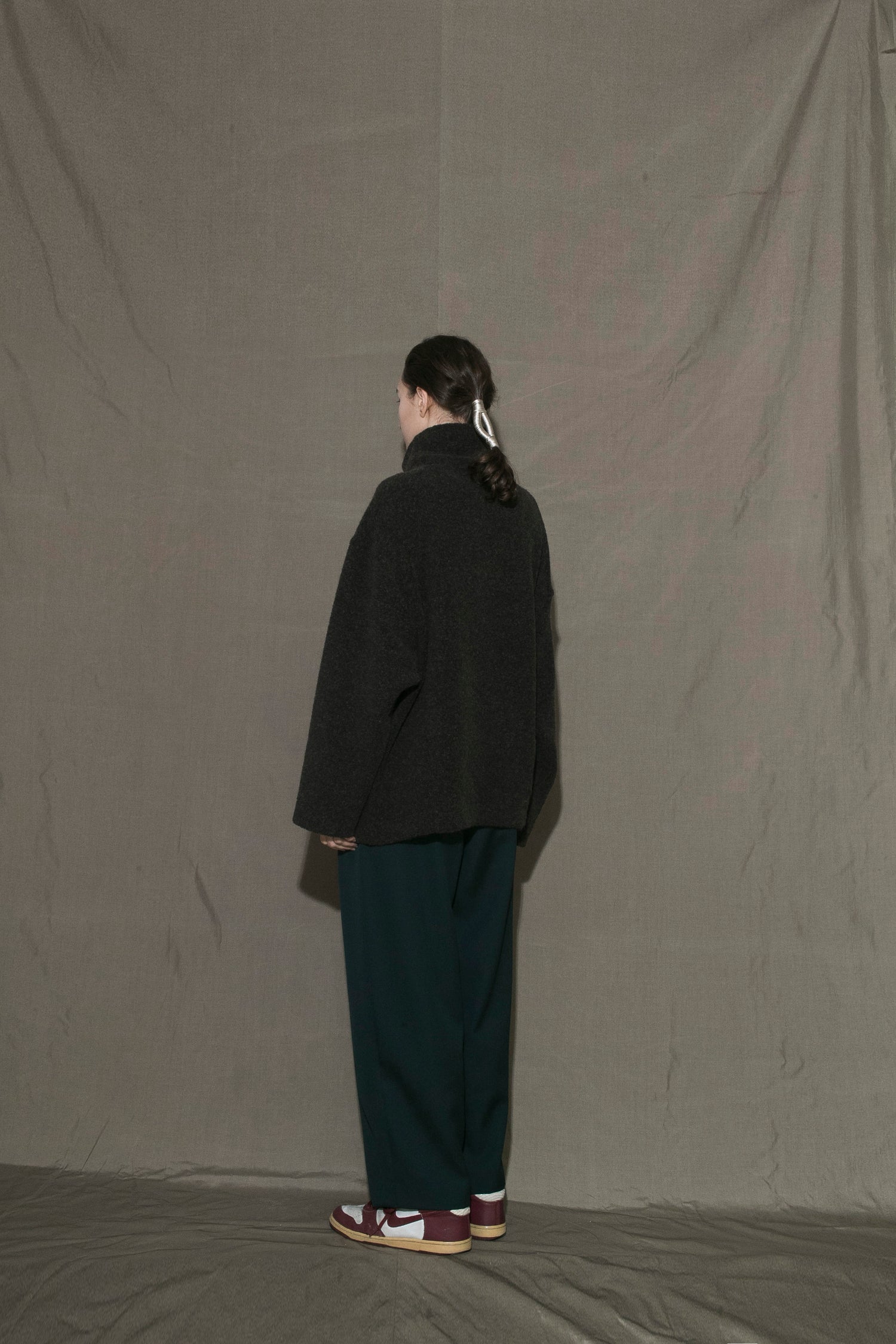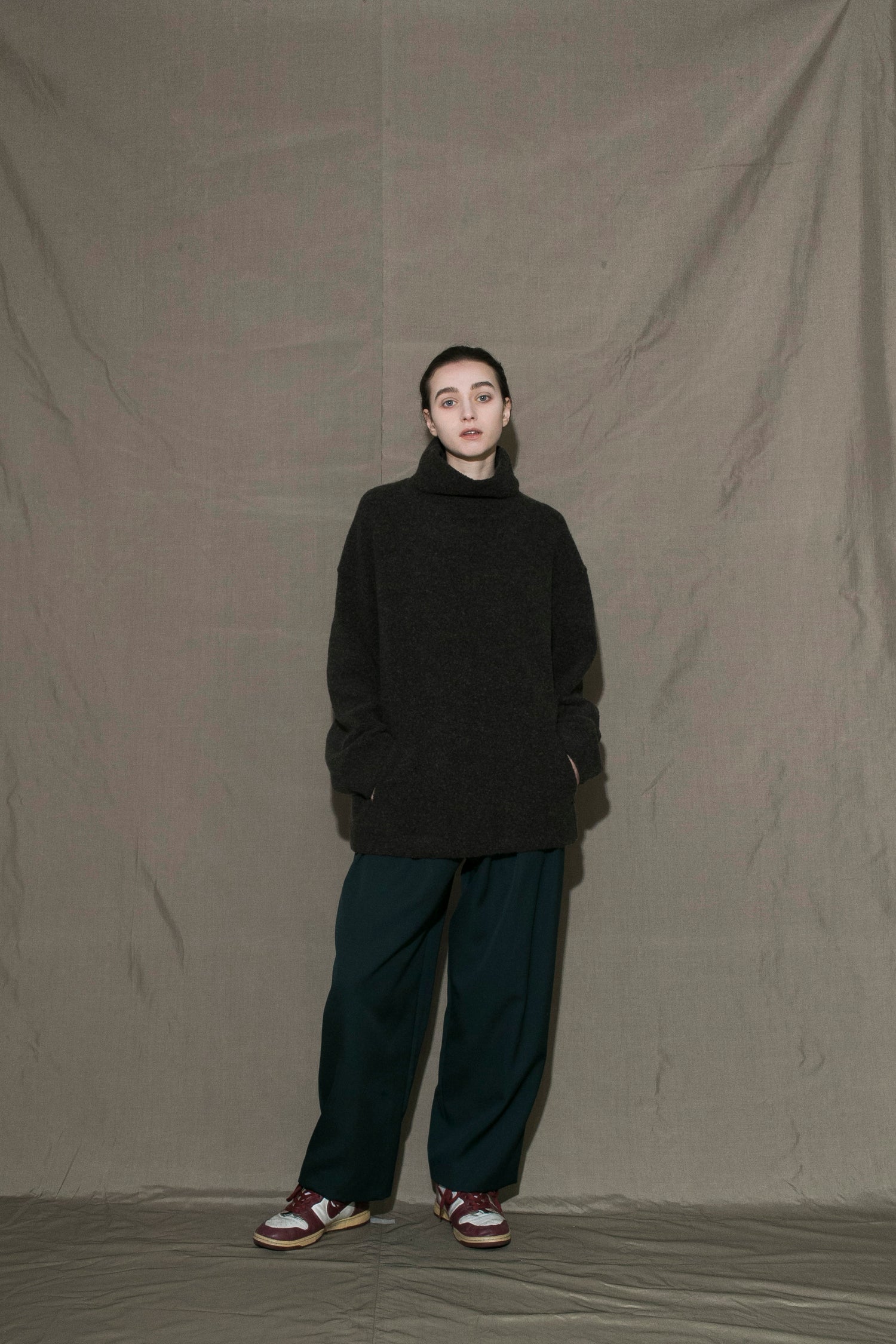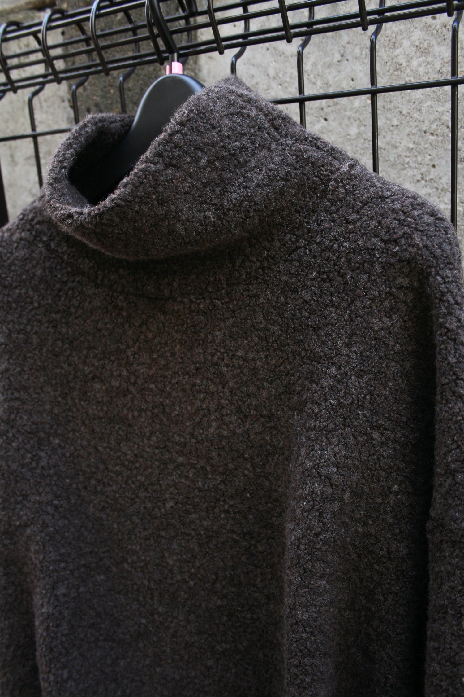 ふんわりとした丸いシルエットが特徴のハイネックトップス。身幅、袖には十分にゆとりのある現代的なアイテムです。リサイクルウールを使用した暖かみのあるパイル生地。 ループの目が立つことでふんわりとした弾力が生まれ、軽く柔らかい風合いが楽しめます。品の良い素材とコンフォートな履き心地が魅力のハイネック。1枚でも重ね着にも着やすいハイネックです。
