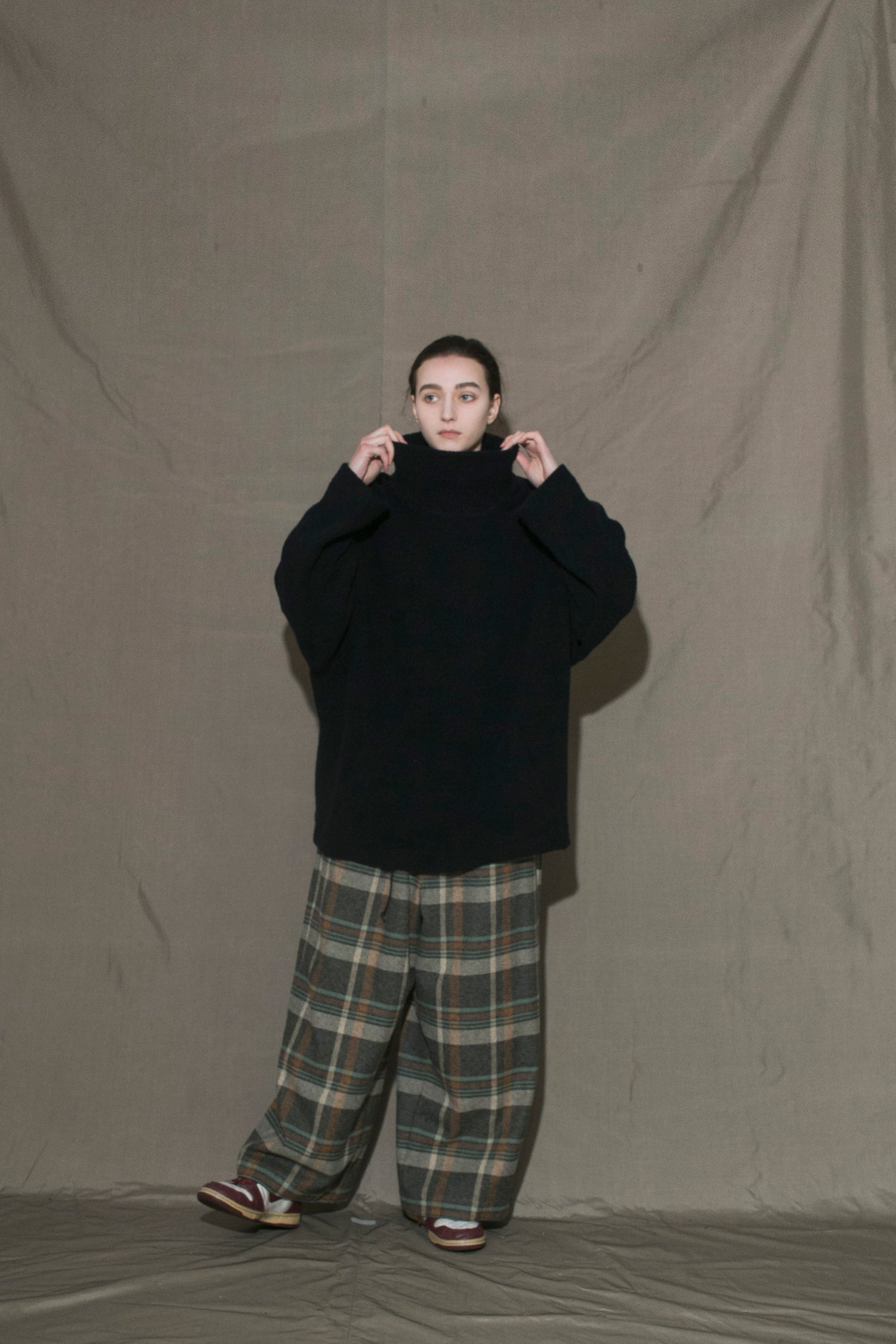 ふんわりとした丸いシルエットが特徴のハイネックトップス。身幅、袖には十分にゆとりのある現代的なアイテムです。リサイクルウールを使用した暖かみのあるパイル生地。 ループの目が立つことでふんわりとした弾力が生まれ、軽く柔らかい風合いが楽しめます。品の良い素材とコンフォートな履き心地が魅力のハイネック。1枚でも重ね着にも着やすいハイネックです。