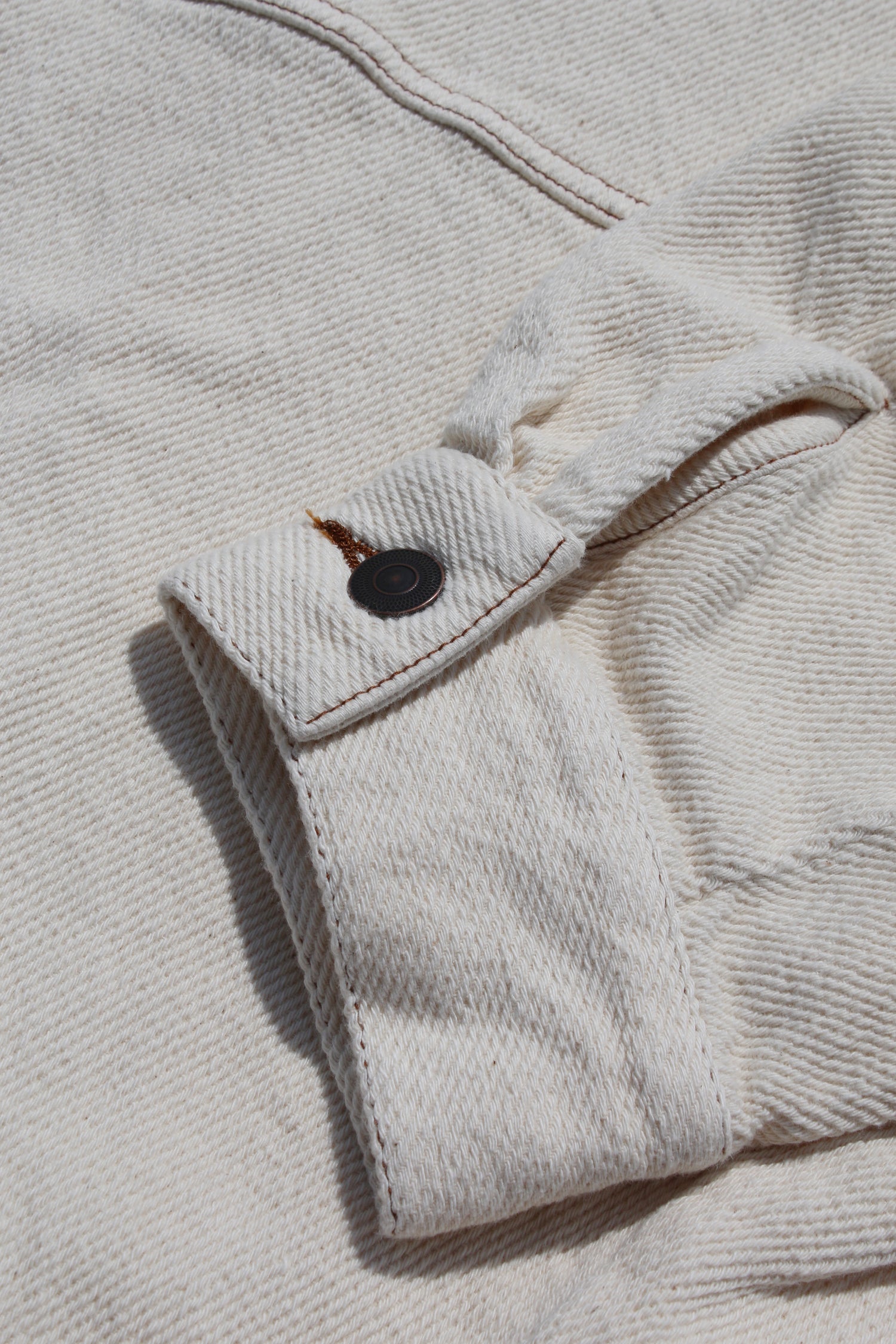 11oz 畝(ウネ)デニムを BIO WASHで仕上げたソフトな質感が新鮮なデニムジャケット。Cotton USAに認証された綿を使用して作られた糸は、均織度が高くしなやかで光沢感のある表情を持ち、 特にインディゴは緯糸は経糸に対して細い番手を使用し白場が目立たず濃いブルーを実現しています。