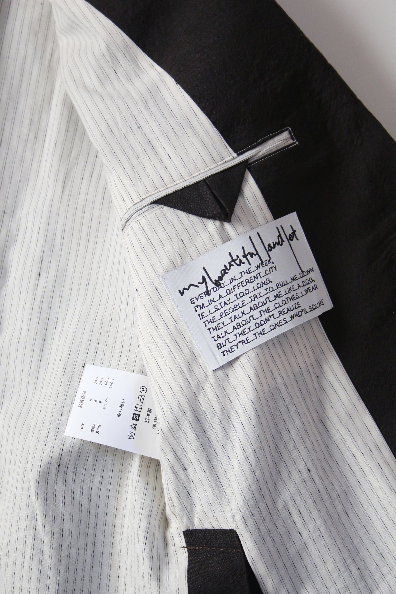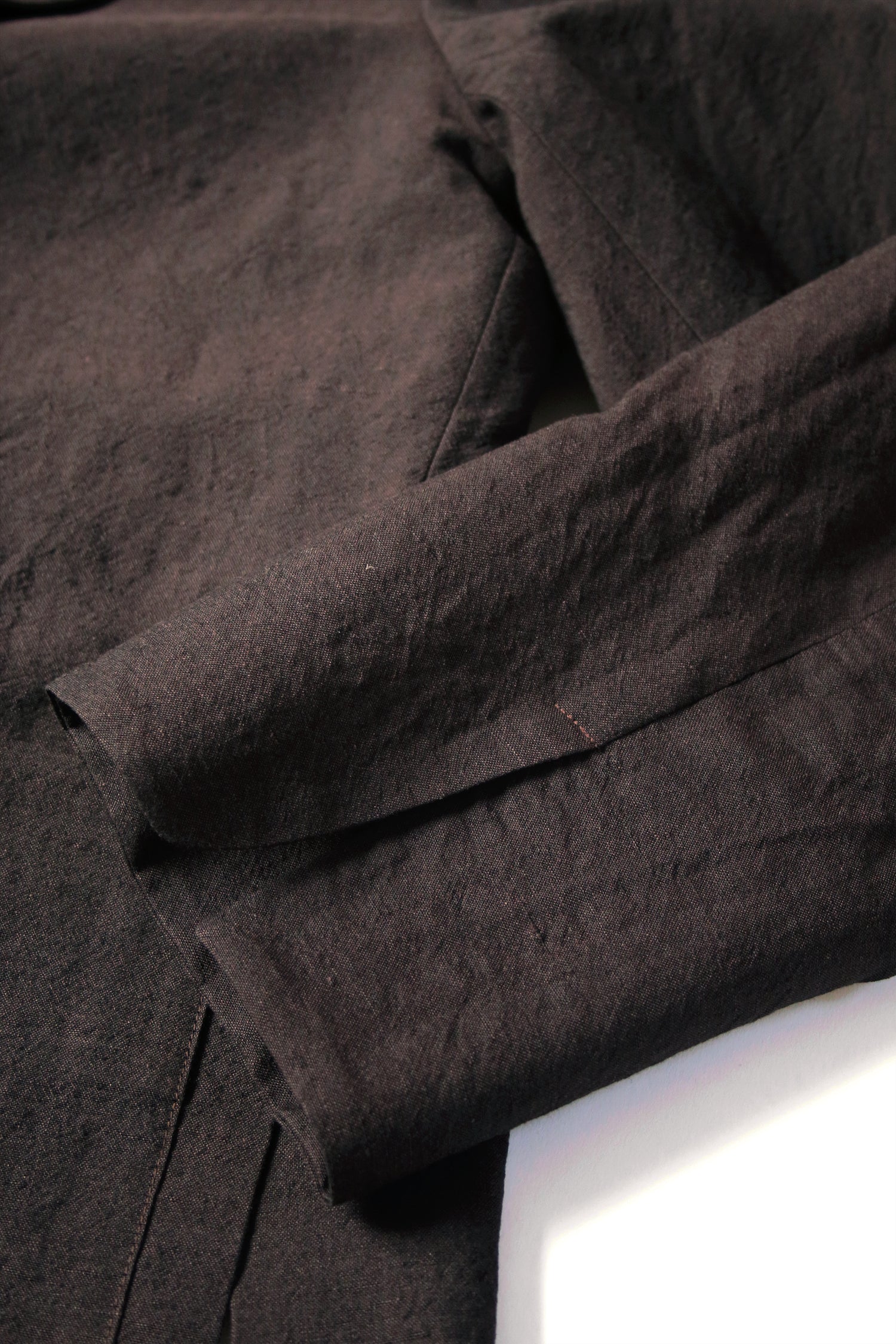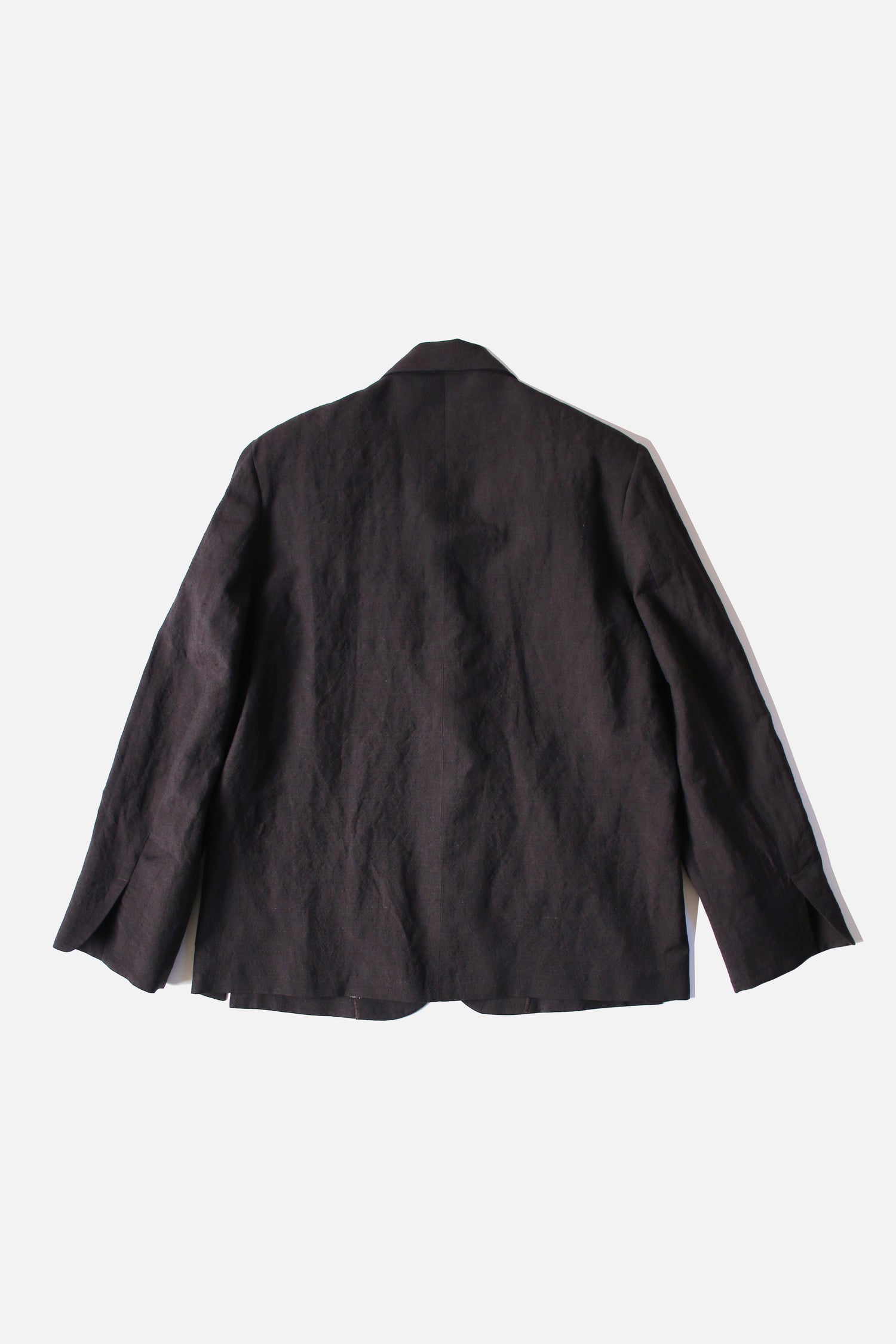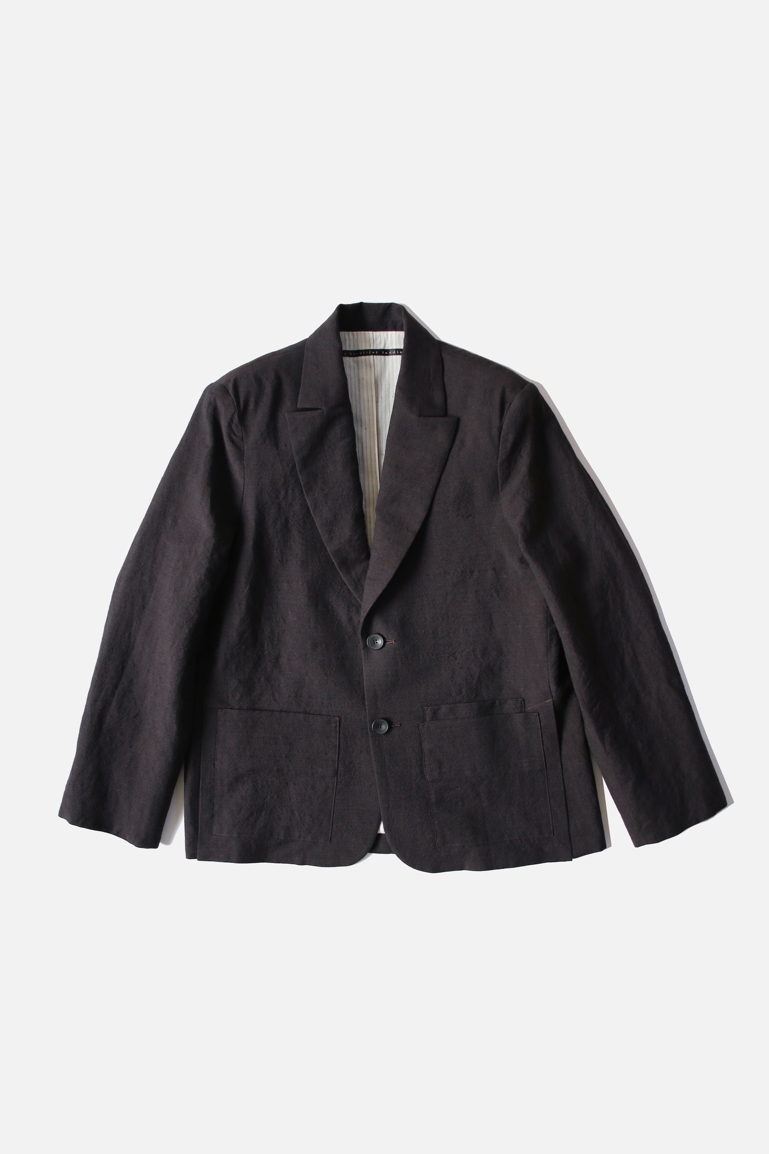 Relaxed-fit tailored jacket presents its unique shape made by Japanese wool and linen blend.