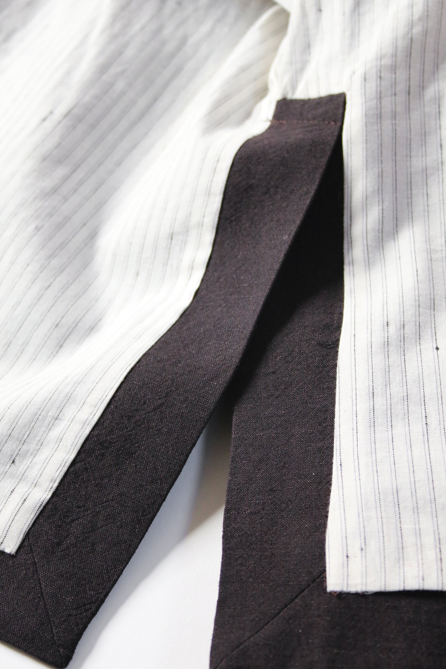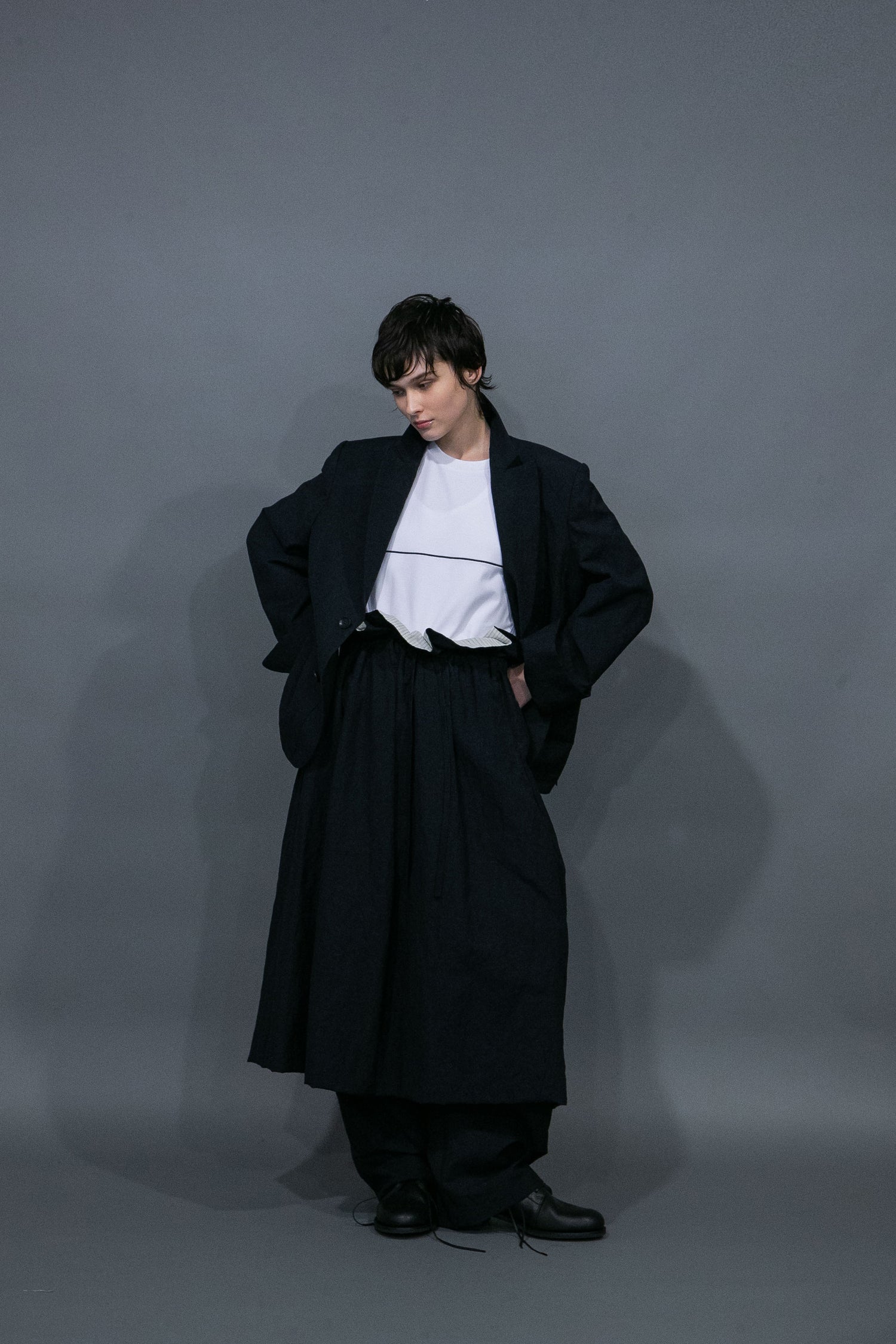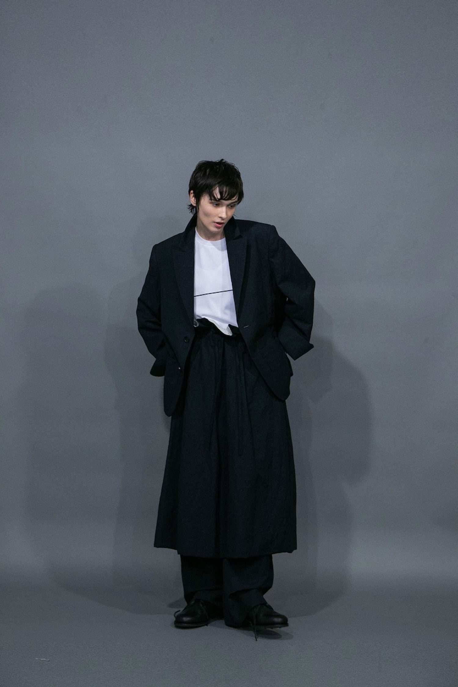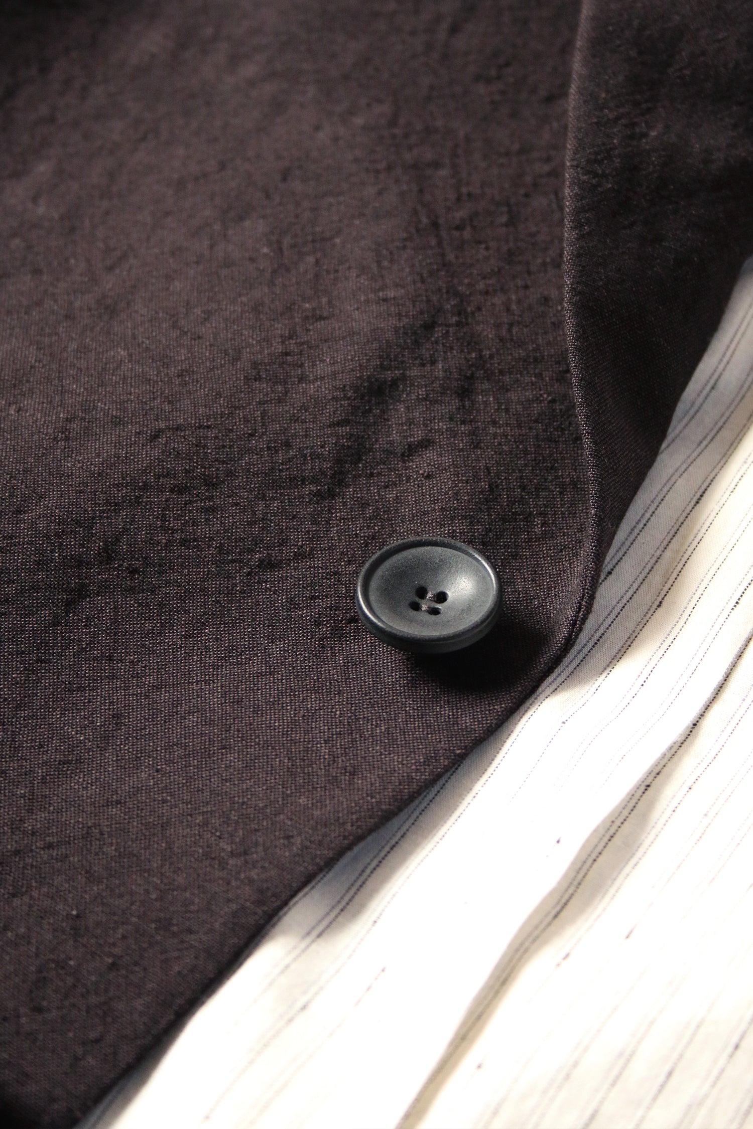 Relaxed-fit tailored jacket presents its unique shape made by Japanese wool and linen blend.