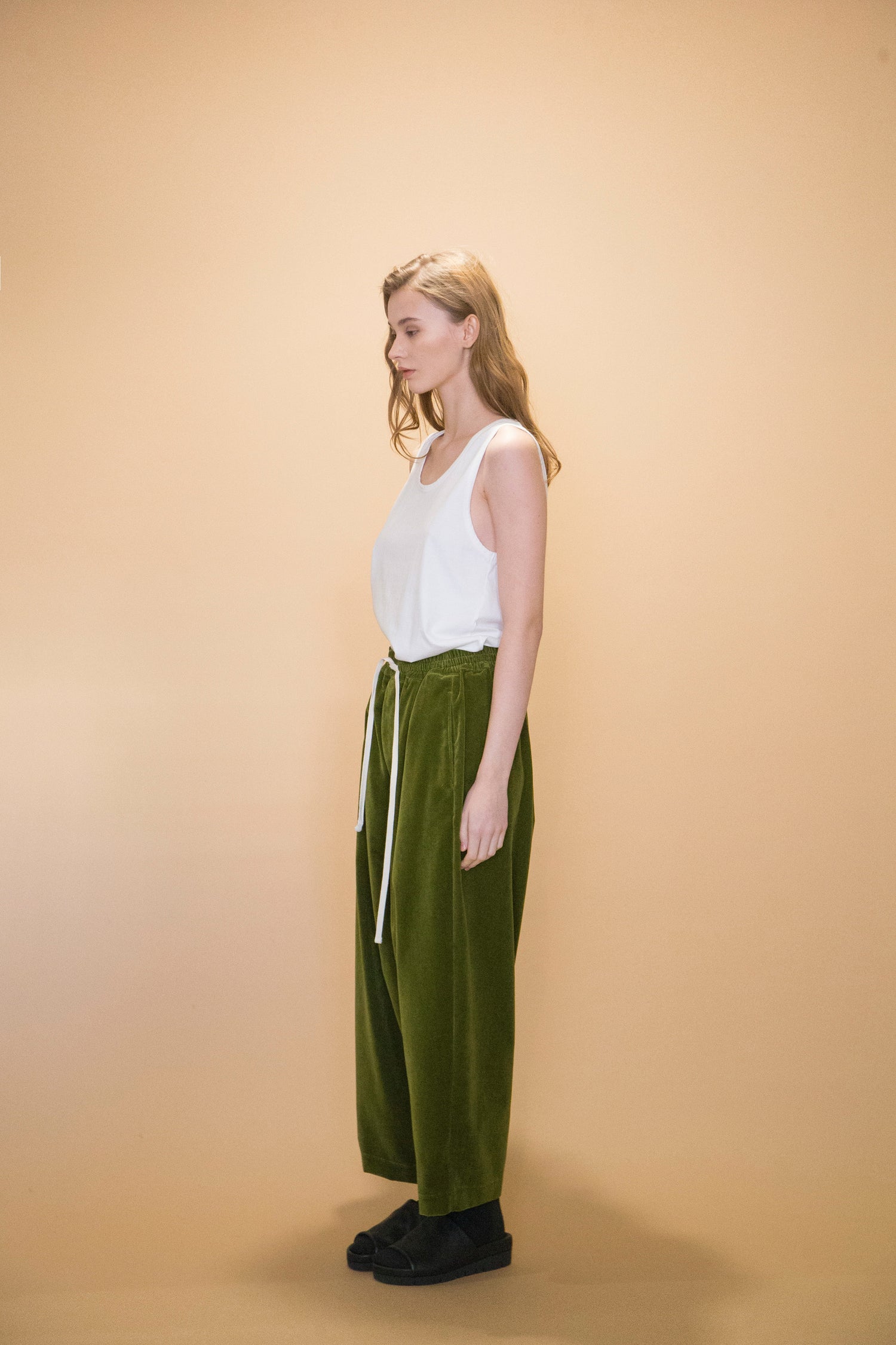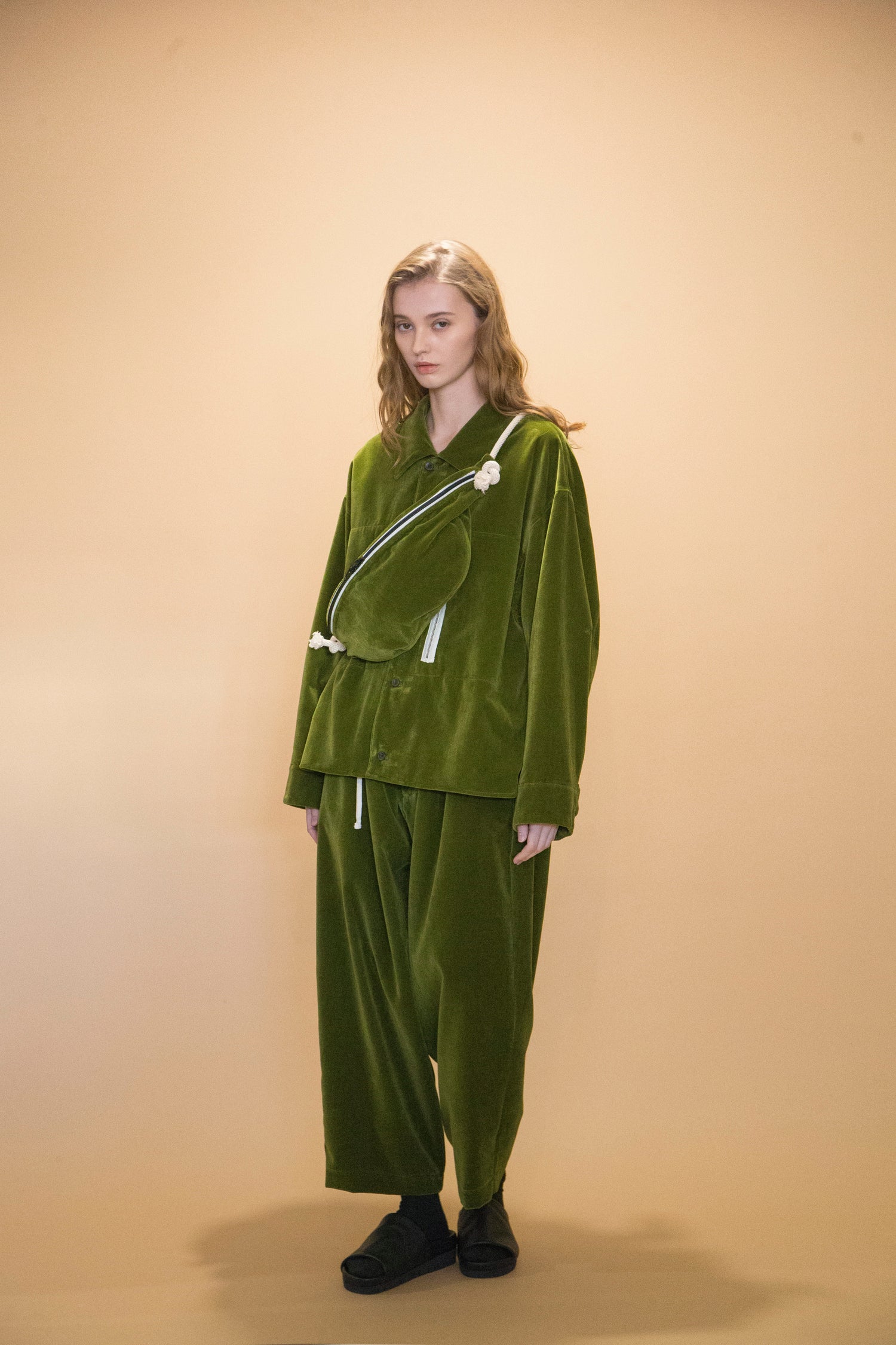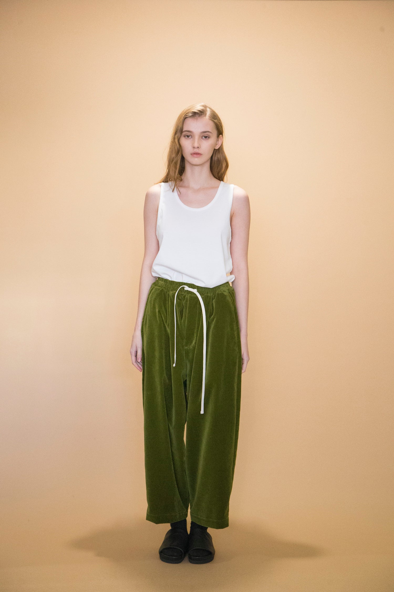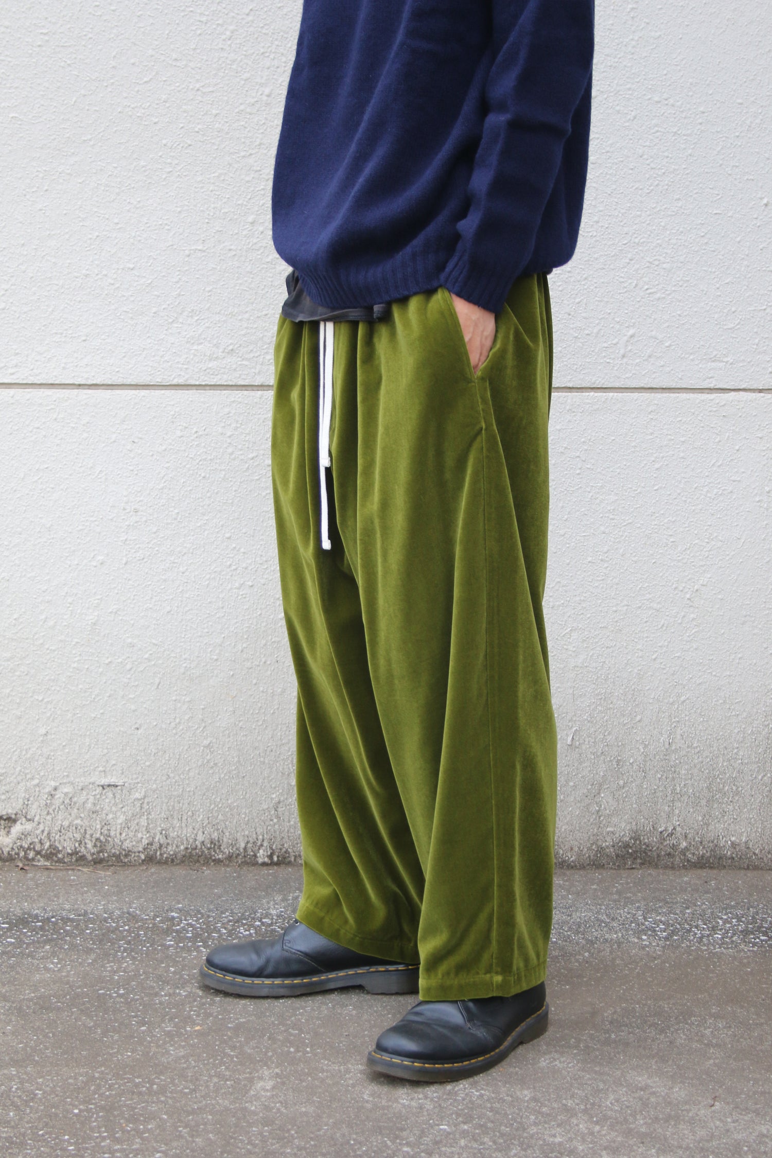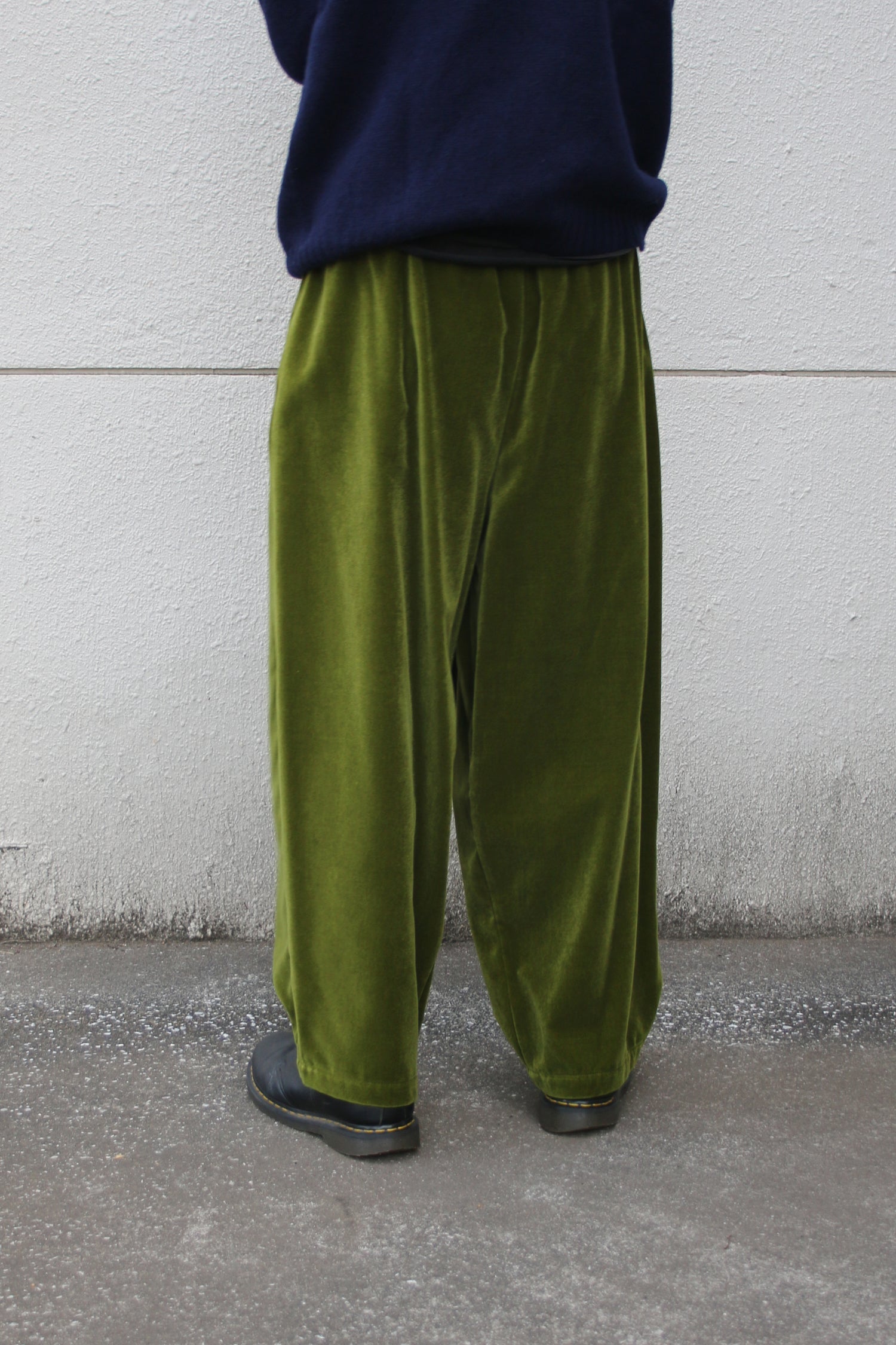 DETAILSLoose-fitted pants in velvet moss green, seriously heavy vintage moods. Features: a pair of hand pockets, oversized silhouette, a deep rise and a tapered leg.