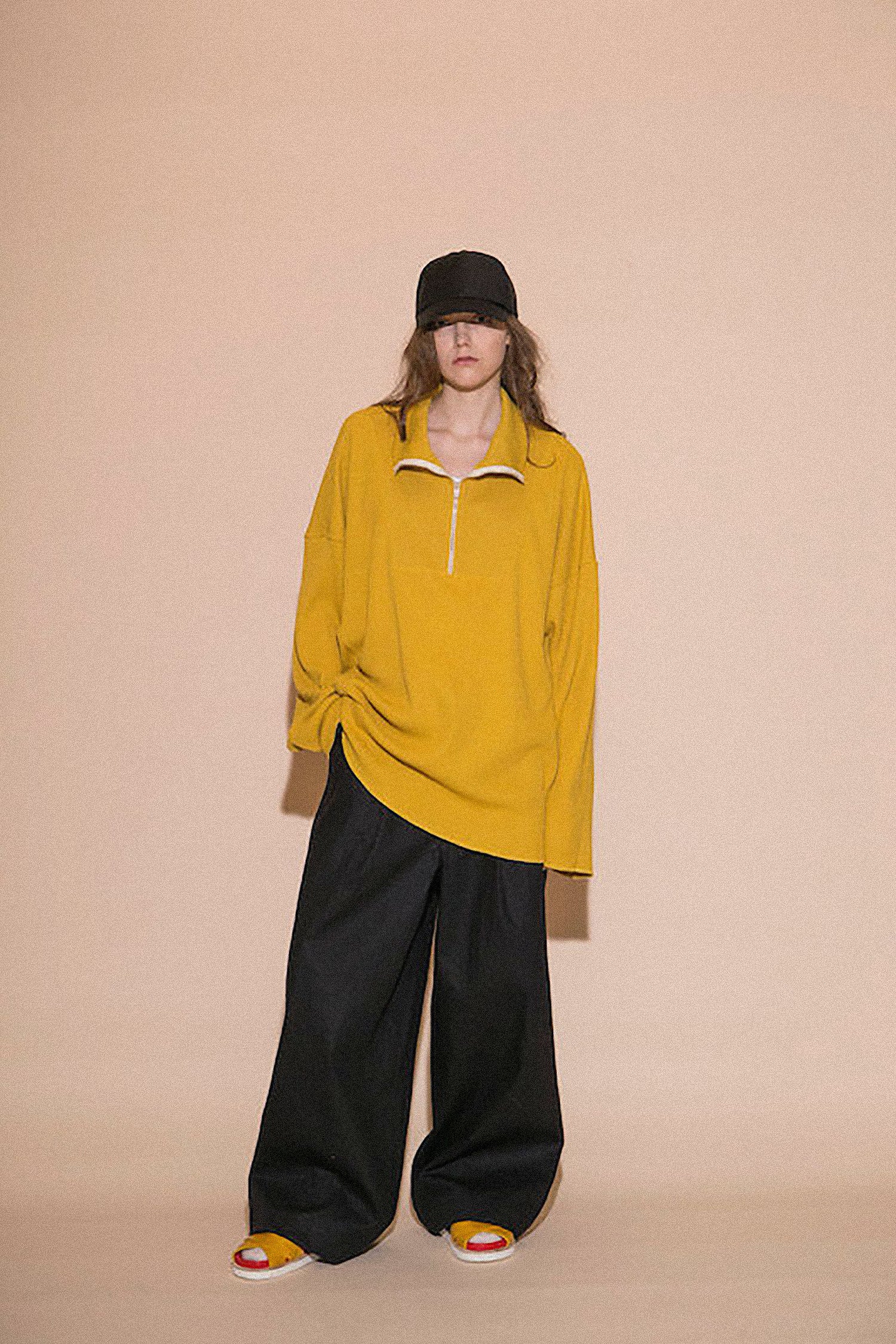 DETAILSLoose oversized long sleeve half zip pullover within the waffle series. Features streetwise yellow and dropped shoulders. With a wider pants put on, independent as downtown’s associate.