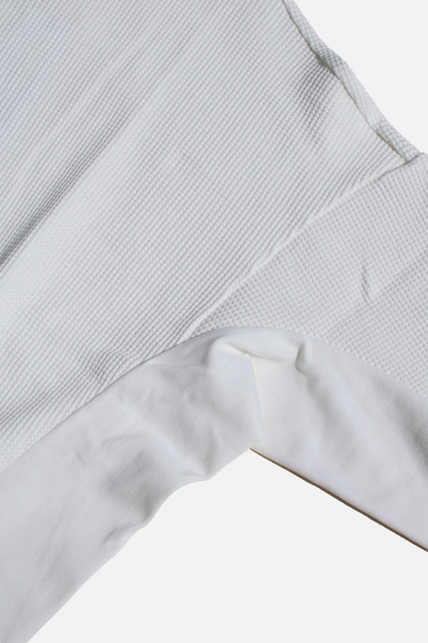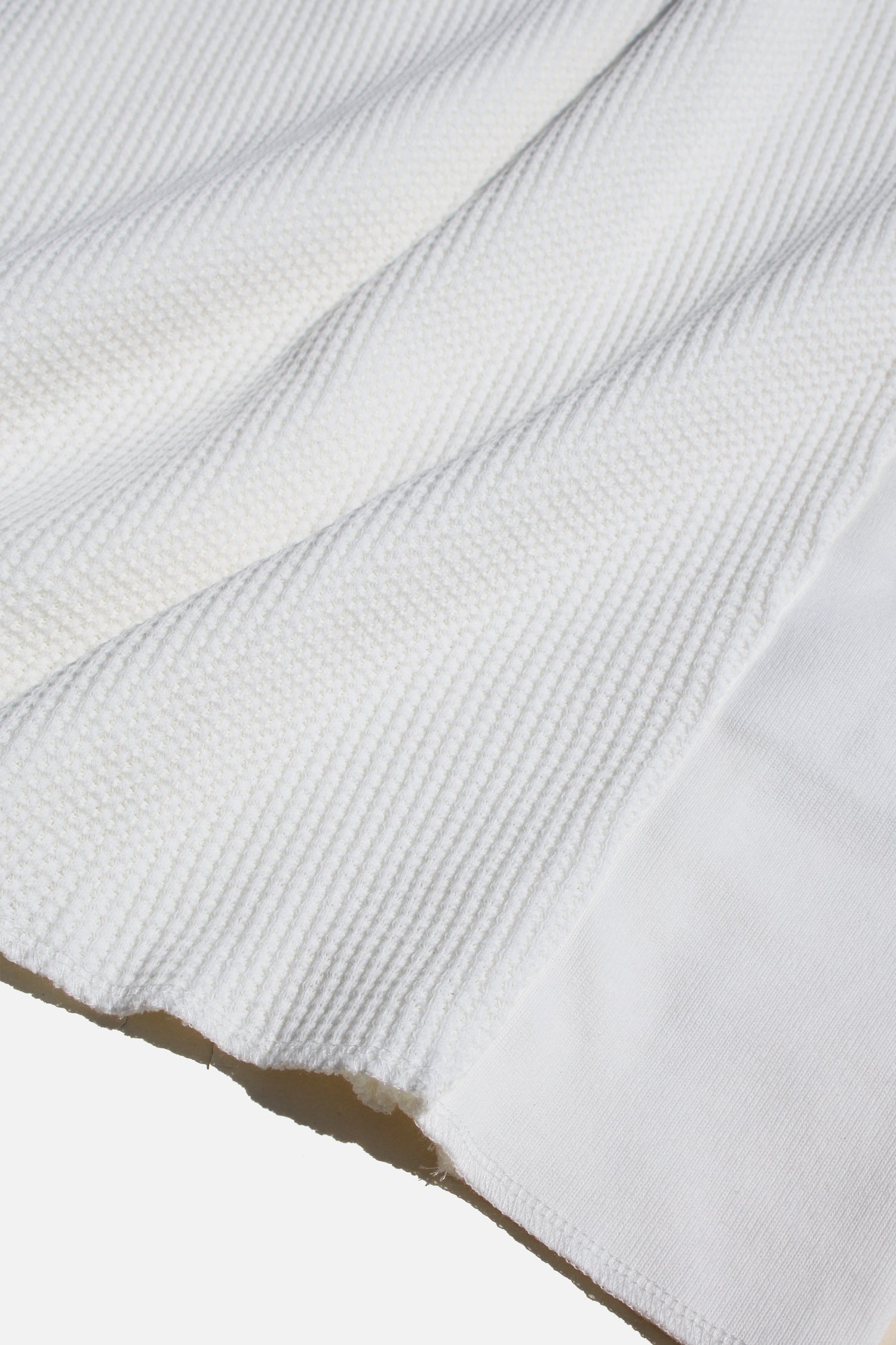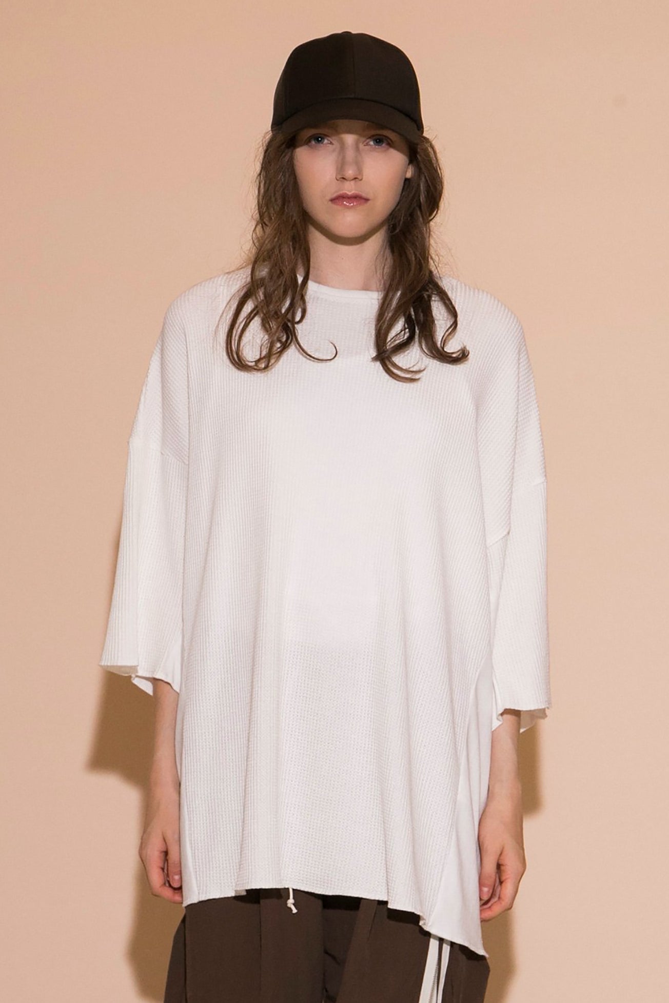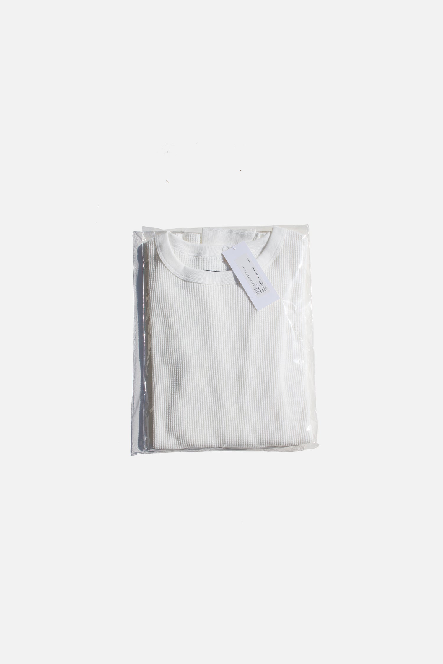 定番のワッフル丸首TEE。オープンエンド精紡交撚機を用した糸を使用。シャリ感があり、さらっとした着心地が特徴のワッフルに仕上がっています。身幅を広くとったオーバーサイズシルエット。