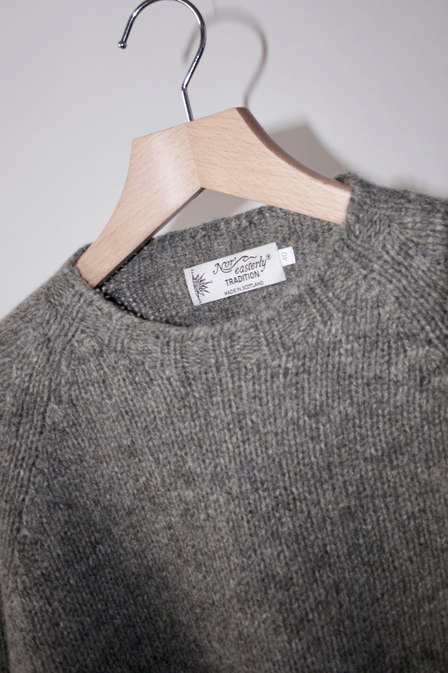 スコットランドNOR’EASTERLYの柔らかくて暖かい上質ウールを使用したクルーネックニット。豊富なカラー展開も魅力です。今回6色で、男女兼用サイズ40ご用意しています。メンテナンスしながら長く愛用する、そんな1着です。シンプルでスタイリングにも使い回しのきくアイテム。ユニセックスのデザインなので、男女ともに基本の一枚として活躍させたいニットです。