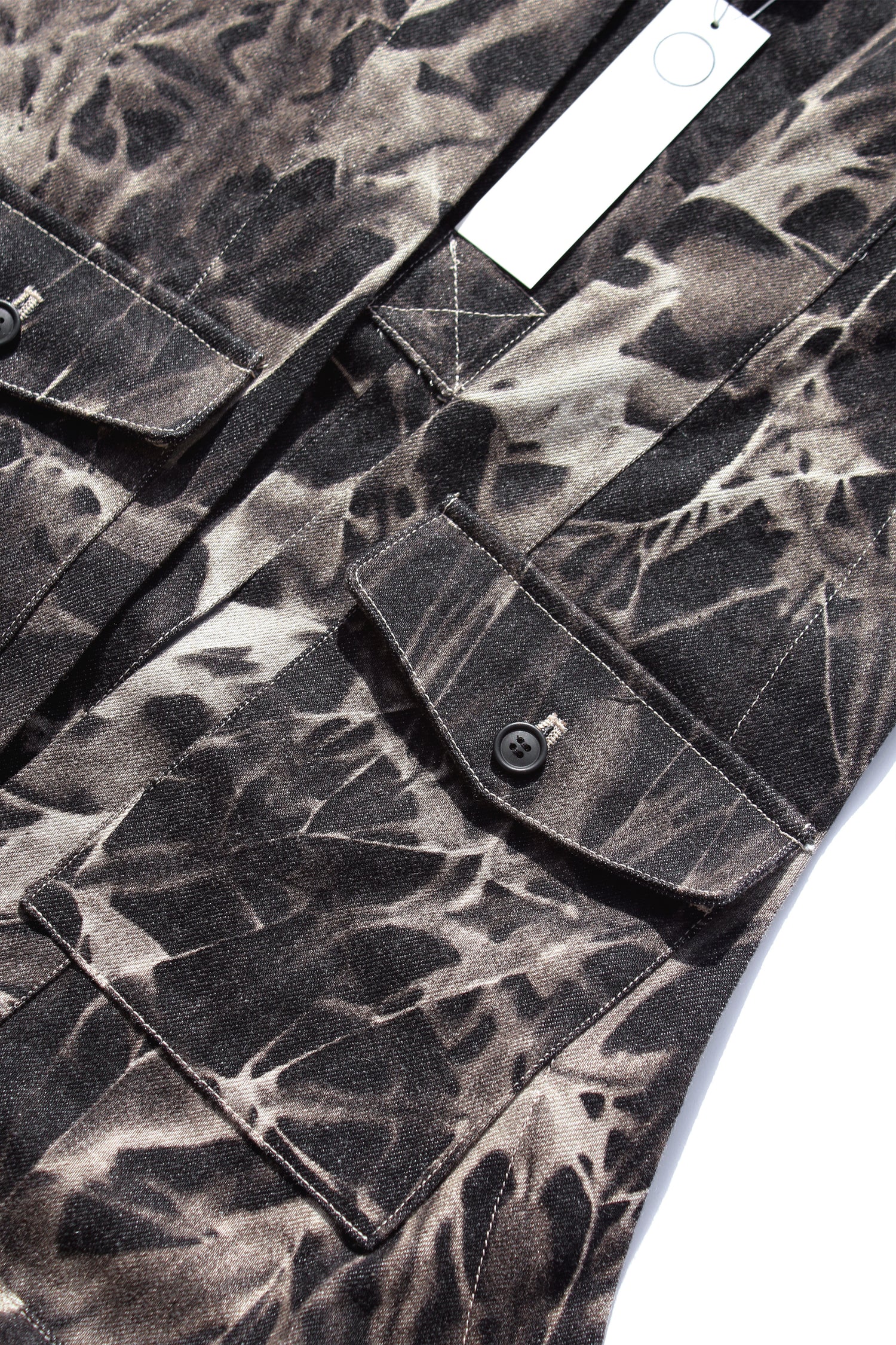 コットンデニム素材を使用し全体にブリーチ加工を施したベストです。ゆったりとしたシルエット。大きくデザインされたフラップポケットが特徴的。複数のアイテム収納を可能にしております。