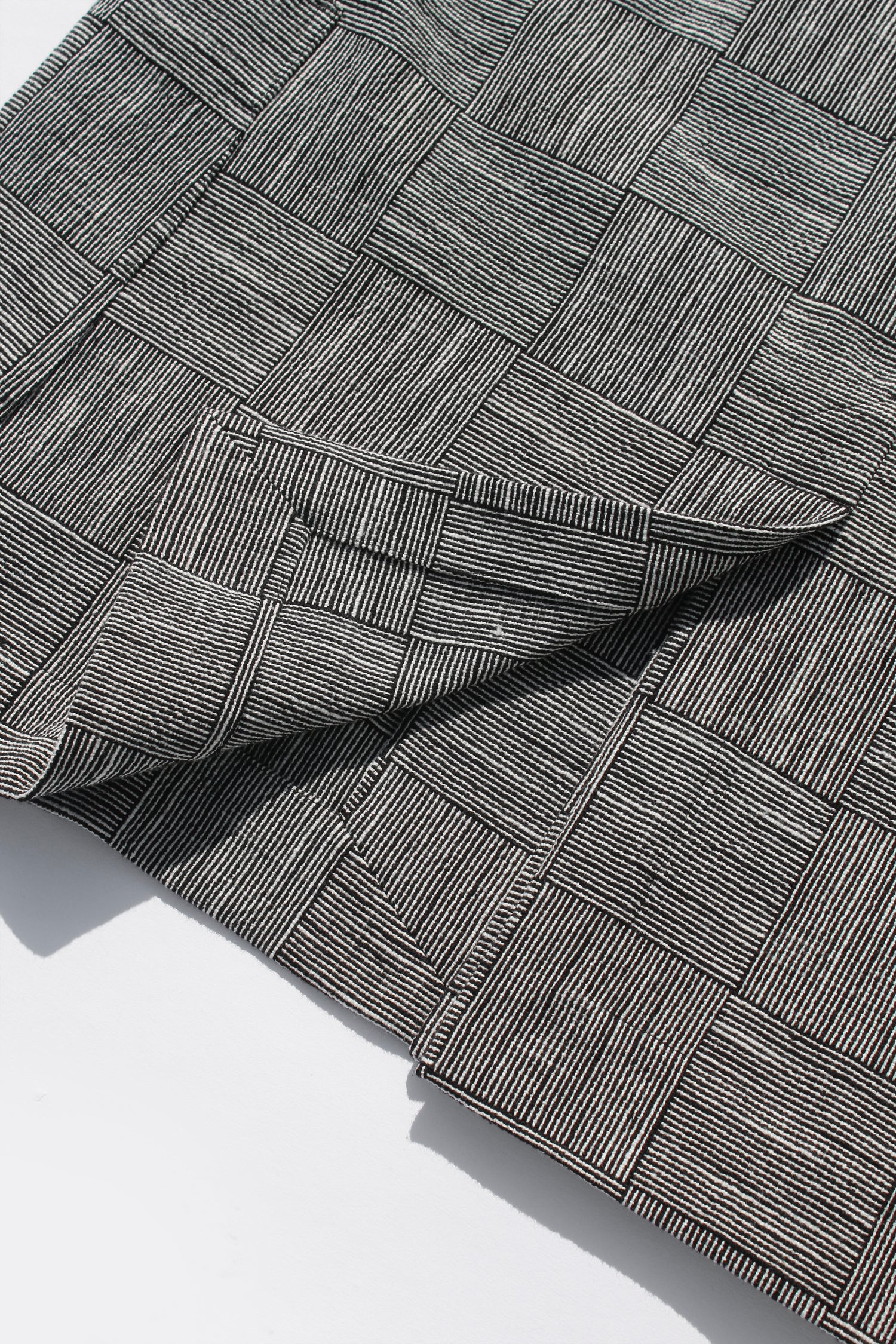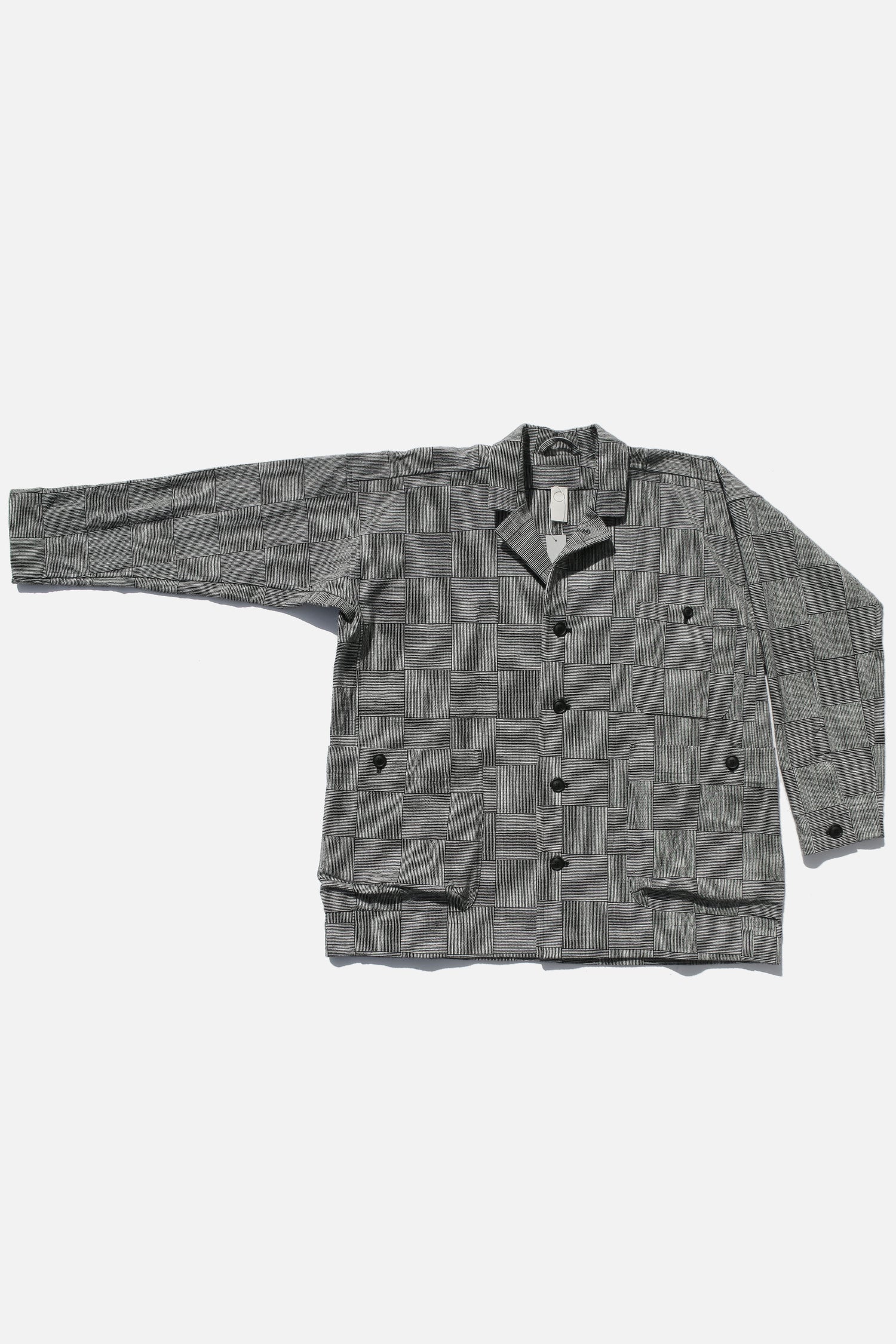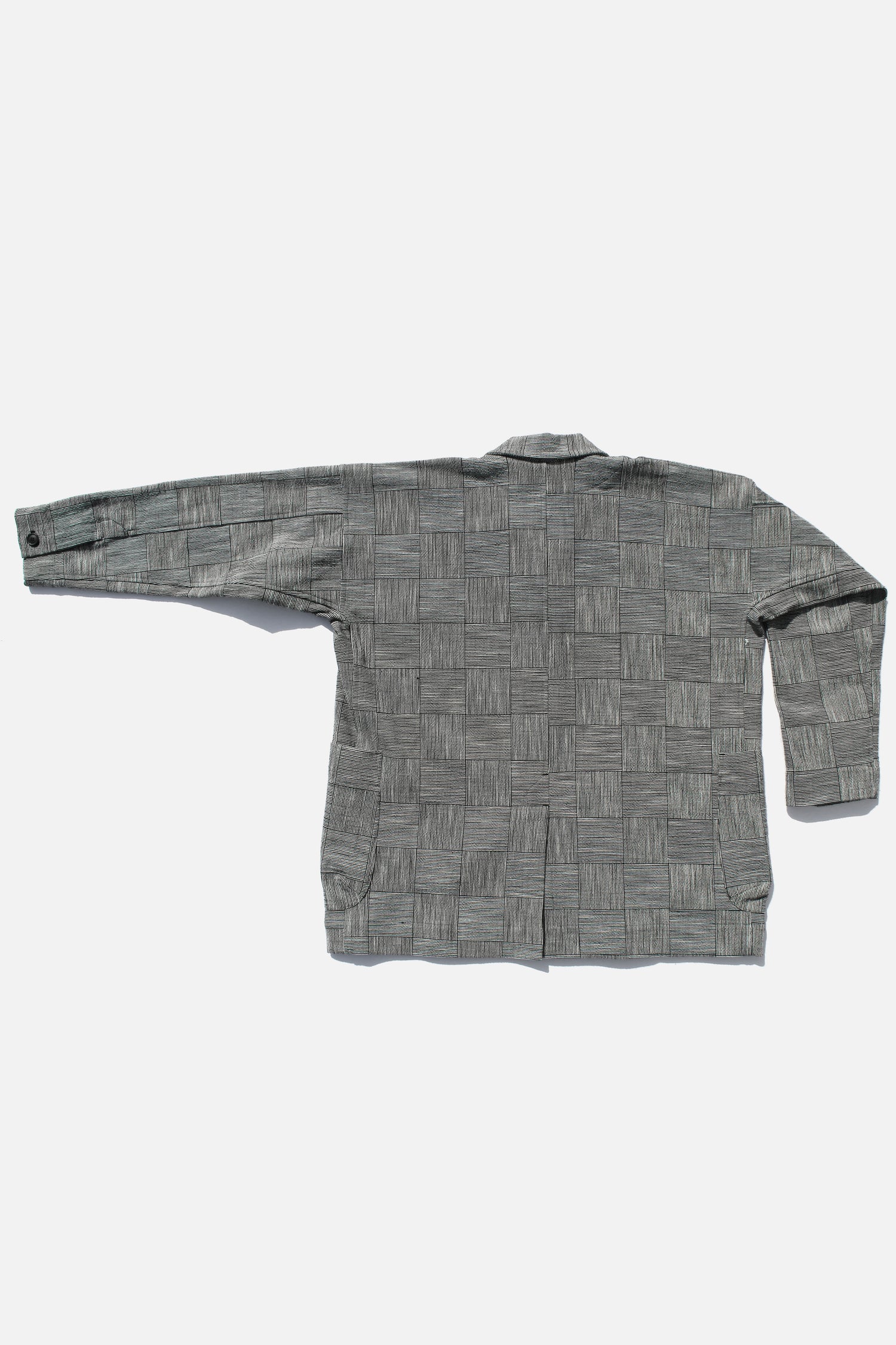 A blazer of cotton, the softest hue, blocked and striped in quiet elegance. Details include a very generous cut, chest pocket, inner pocket and side pockets for gathering the unnoticed, and the necessary.