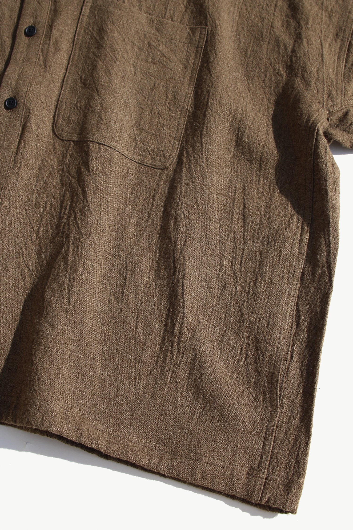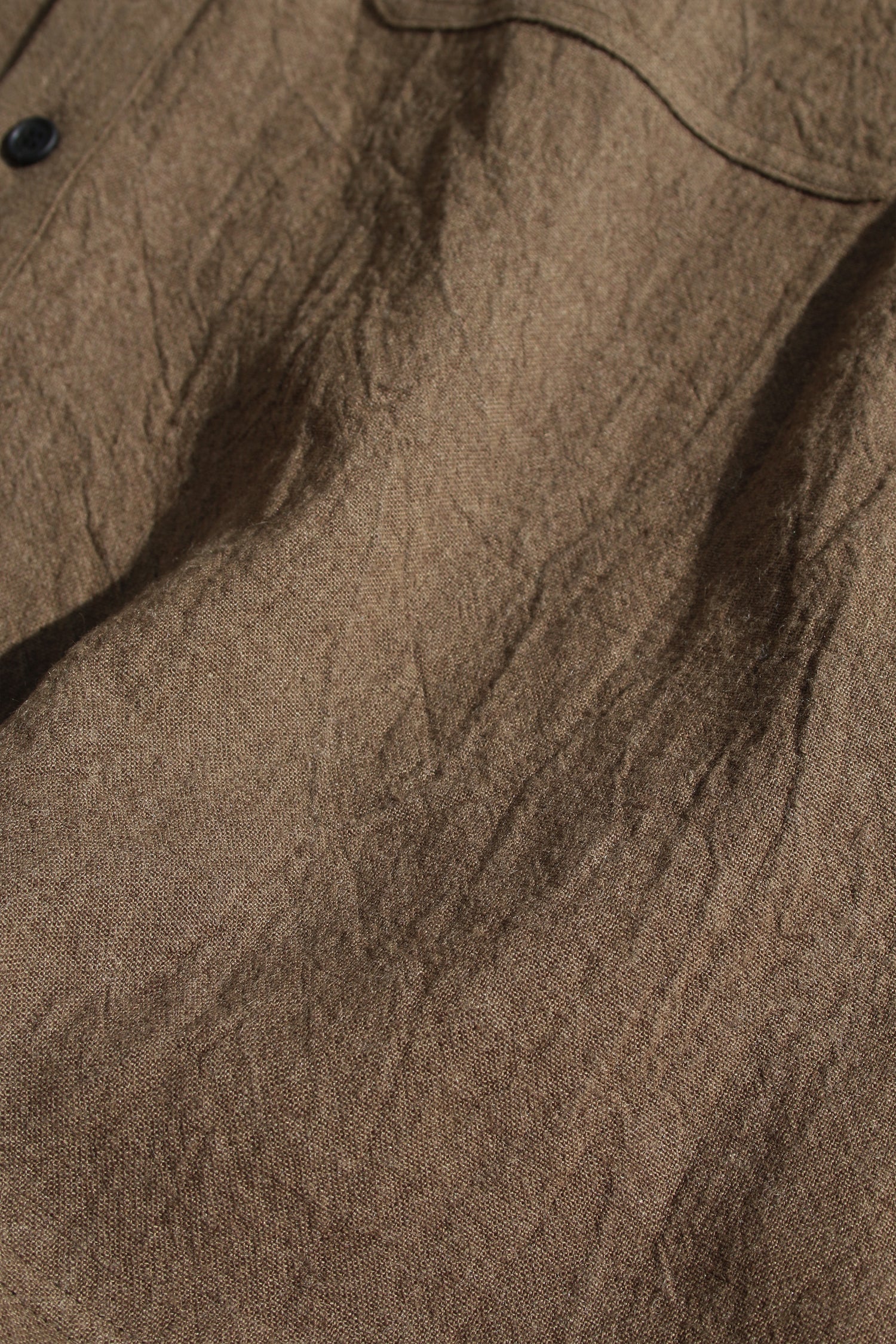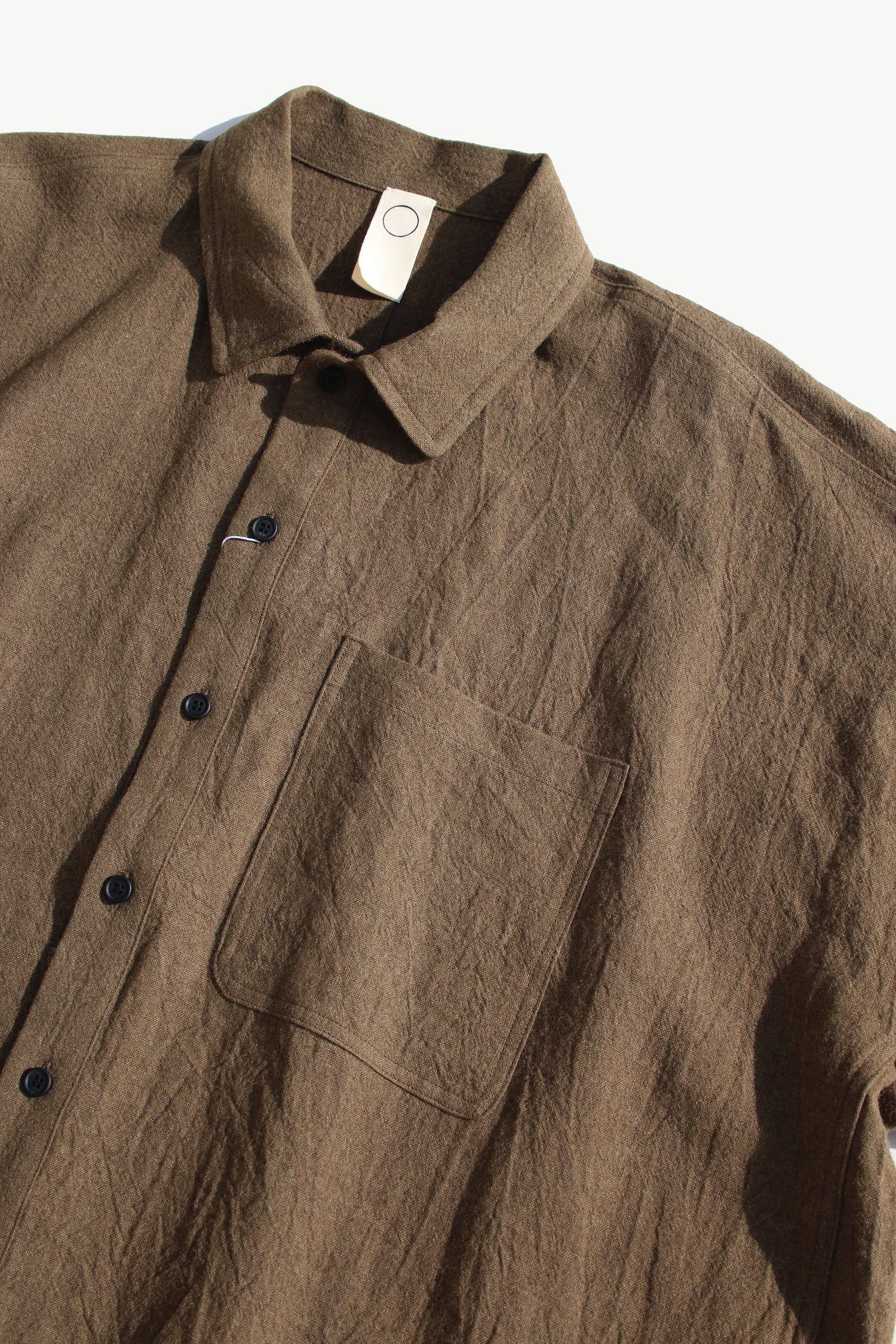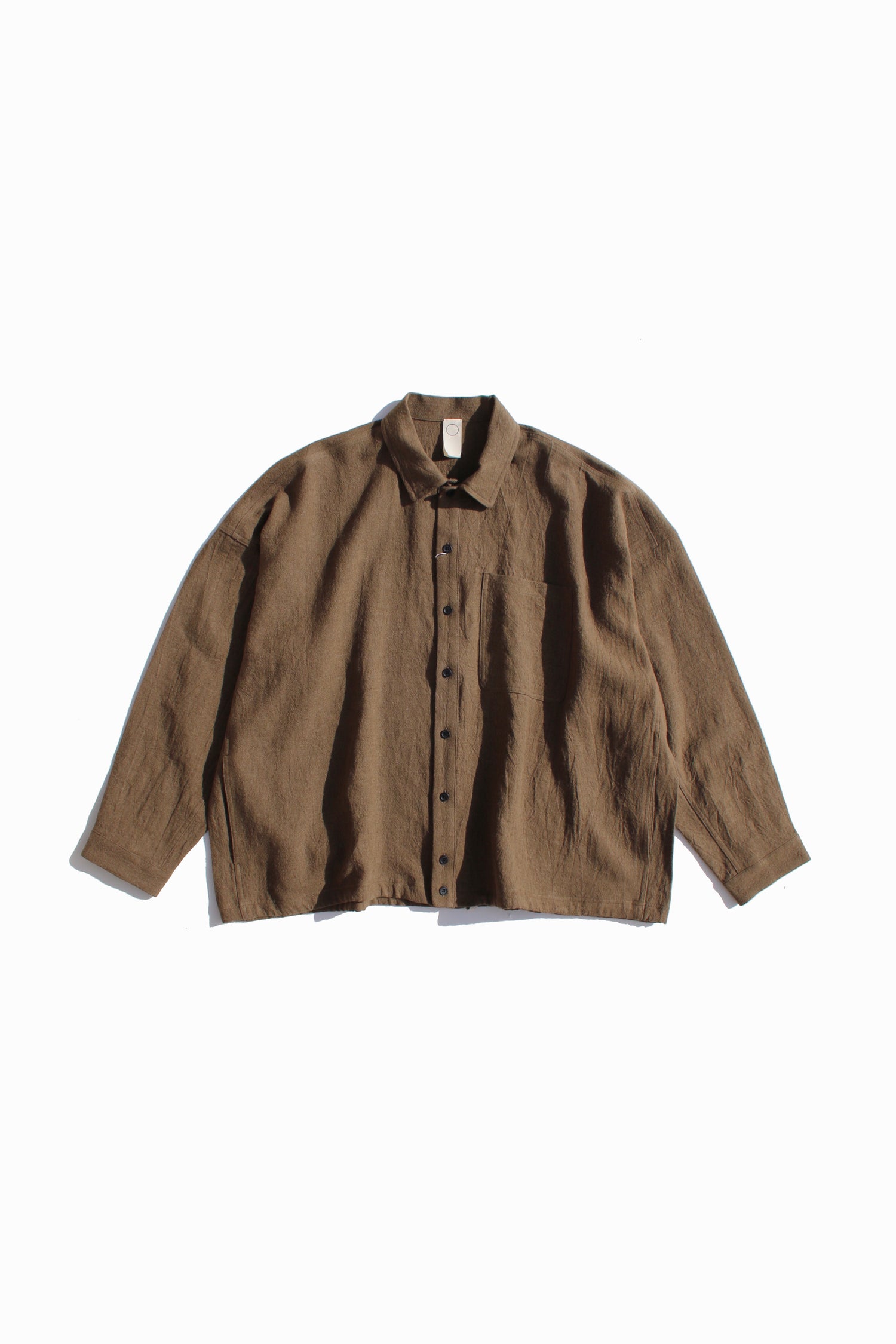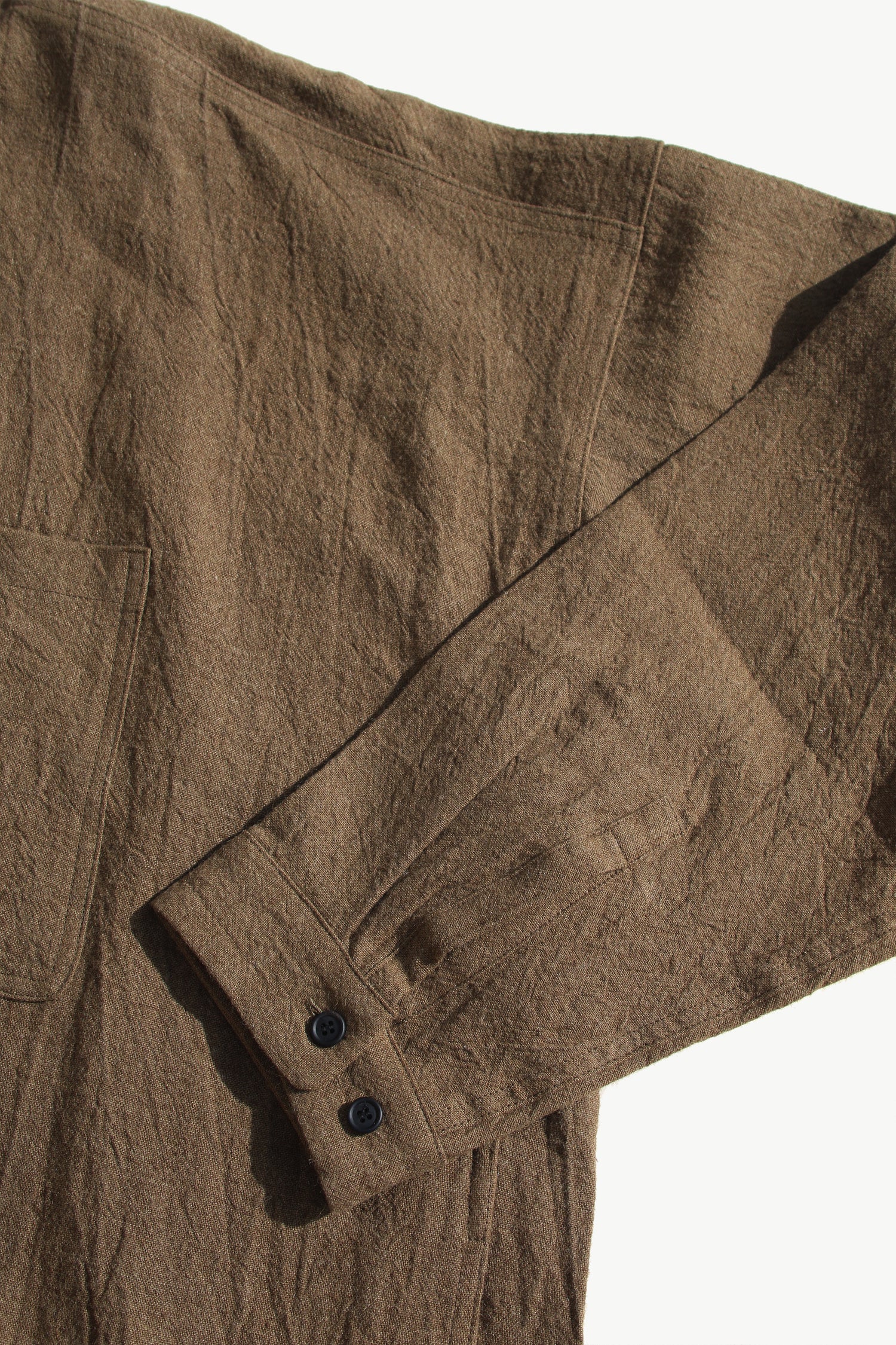 DETAILSClassic bomber shirt from the heart of Japan. Cut in a dry linen and wool blend. A self-fabric front patch pocket and hem drawstring were added, to make the shirt complete for contemporary needs.