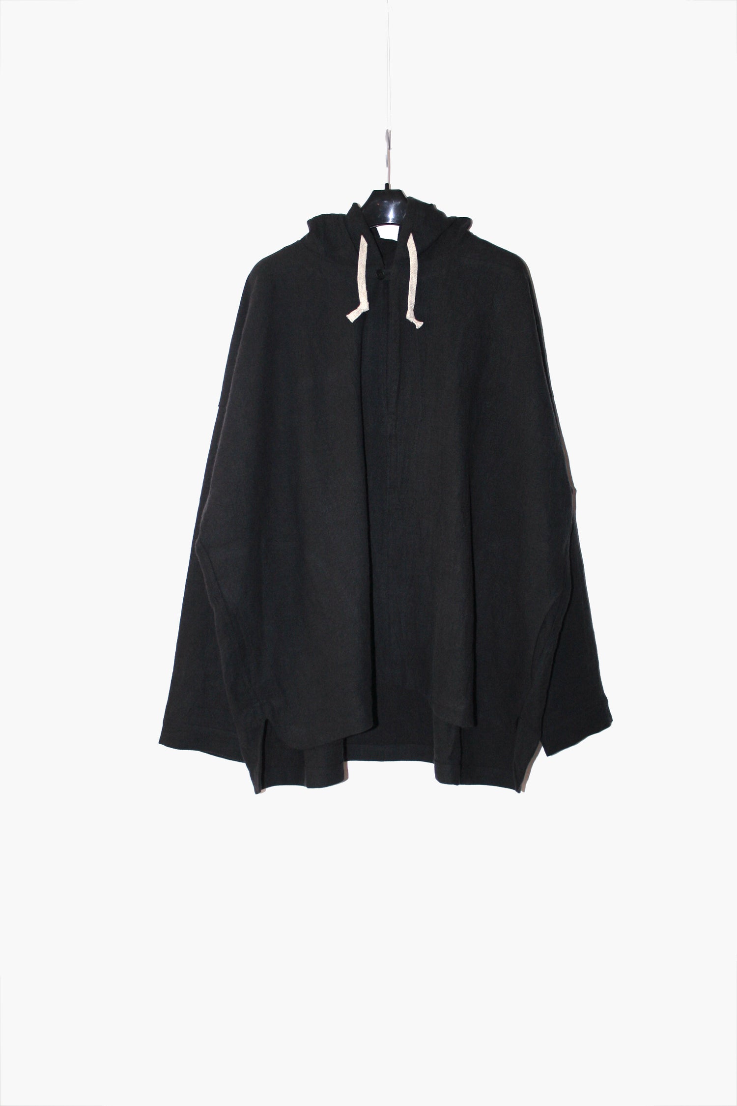 O PROJECTよりフード付きのプルオーバーシャツ。リネンウールボイル生地を採用しております。コンフォートでふっくらした表情が特徴の素材です。フードにドローコード、袖口とフードはボタンアジャスト。ハンドポケットのディテールがポイントです。後ろ身頃にセンタープリーツが入り、綺麗なシルエットが生まれています。シャツでありながら、ライトアウター感覚でお楽しみいただけます。インナーとのレイヤードもオススメです。