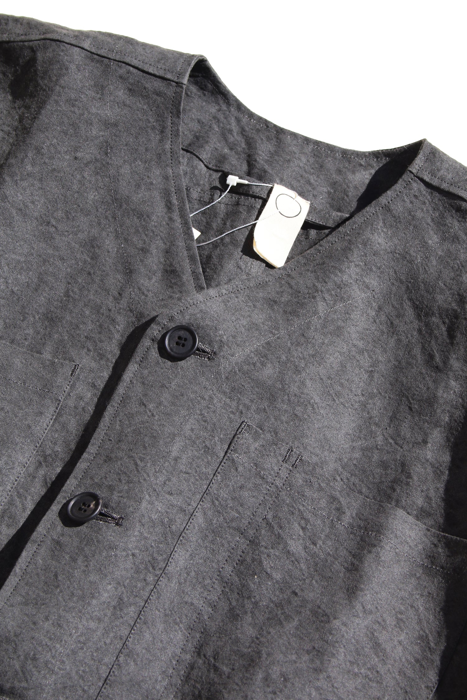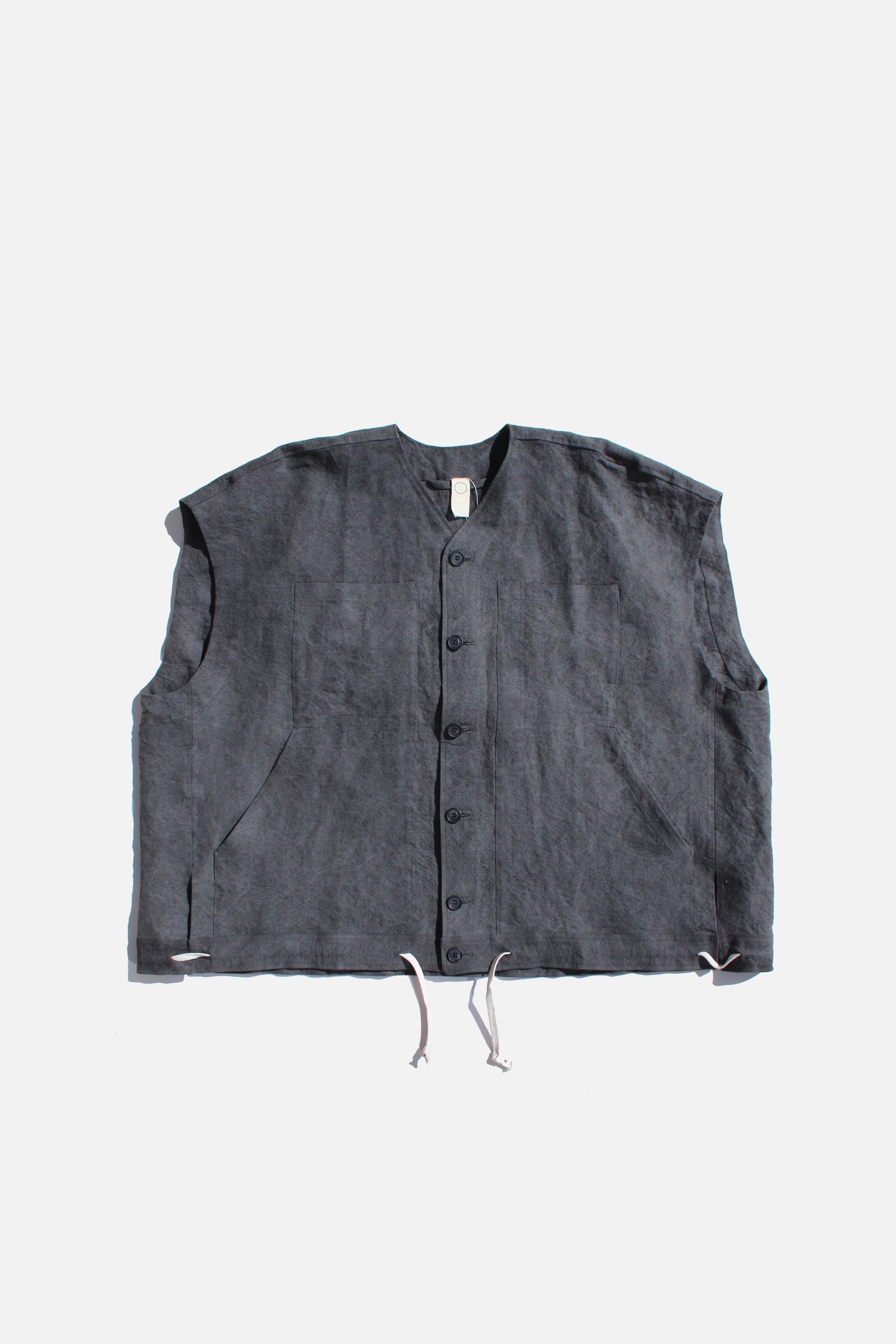 O PROJECT LINEN WASHI CLOTH BODY WARMER - DARK SUMI