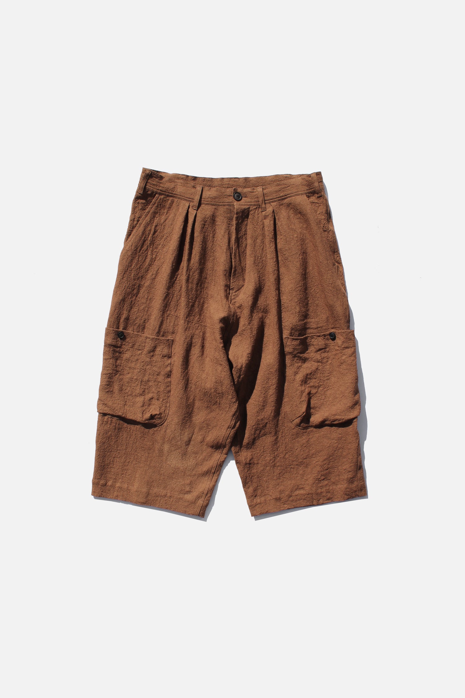 O PROJECT NAT DYED LT CANVAS CROPPED CARGO PANTS - KAKISHIBU