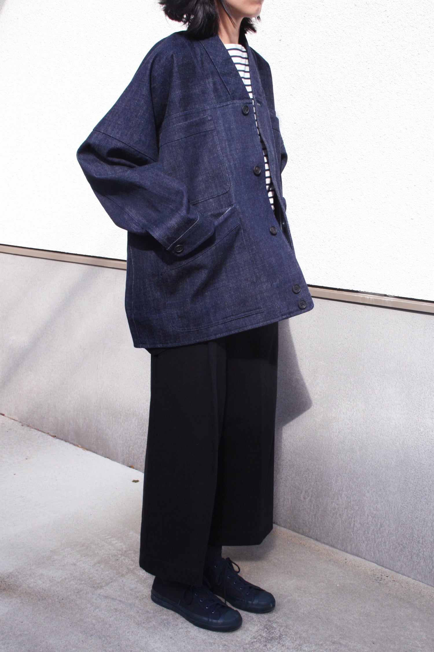 ブランドの得意とするリラックスシルエットのジャケット。シチュエーションを問わないオープロジェクトの定番デニムジャケット。和式襟周りのデザインは、とても構築的でいてクラシカルな佇まい。 また、ツールや手帳などを収納するパッチポケットが目を引きます。 中厚で通気性のあるオーガニックコットン生地は、一年中着用するのに理想的です。 性別、年齢も超え、着用すると意外にもハマる、便利でコンテンポラリーなアイテム。同素材のデニムパンツ(インジゴ、キナリ)とのセットアップもおすすめです。