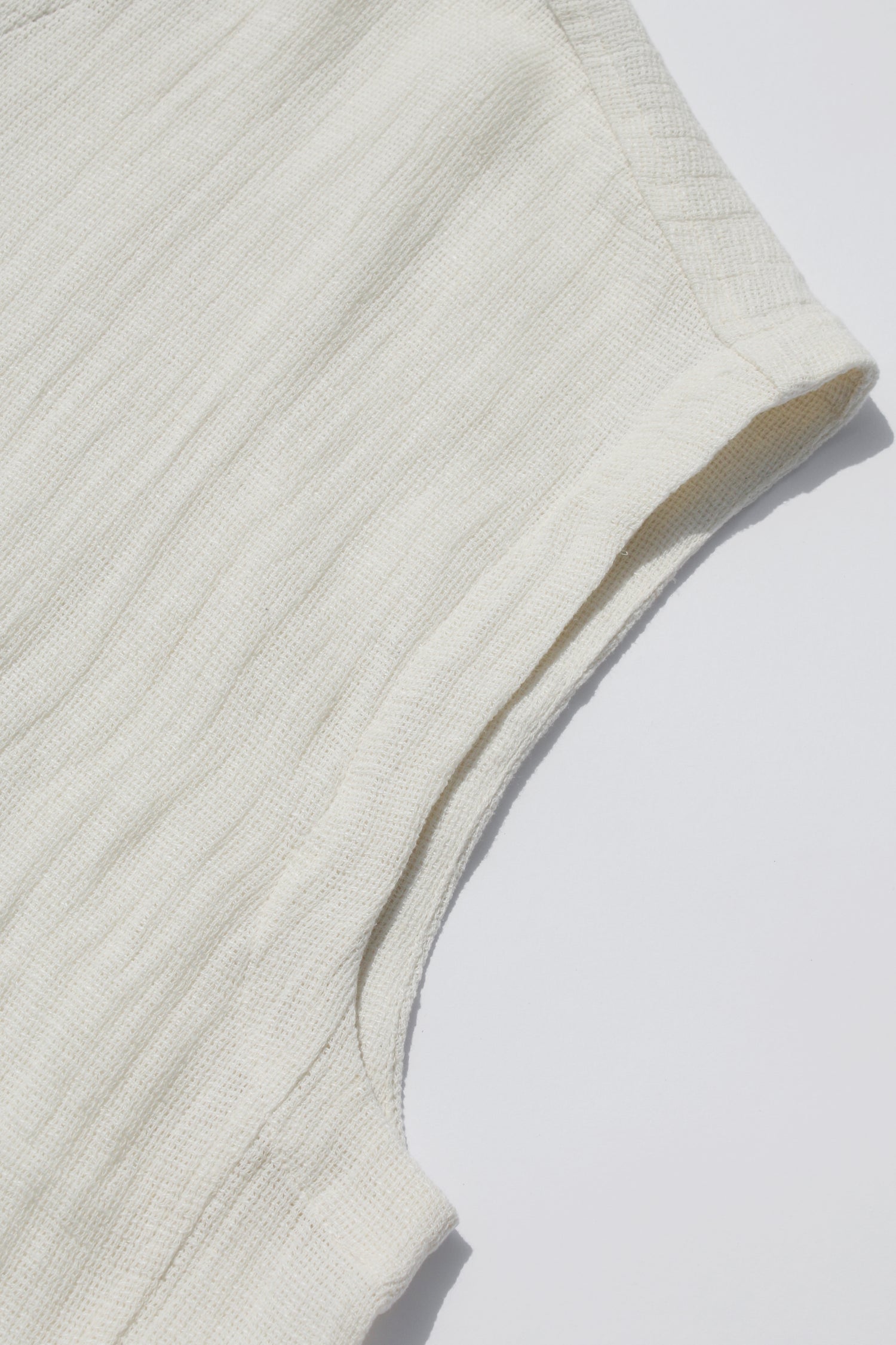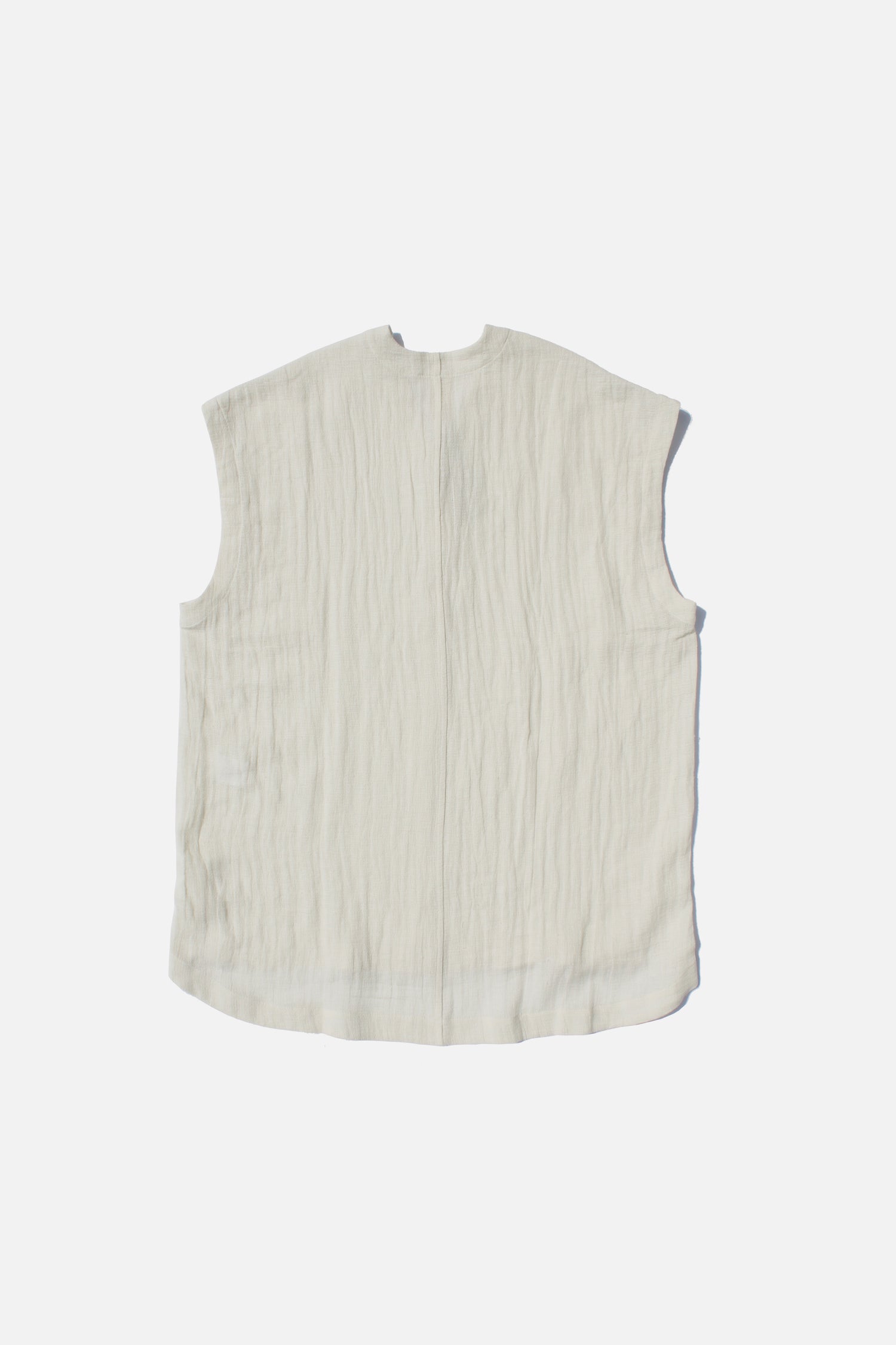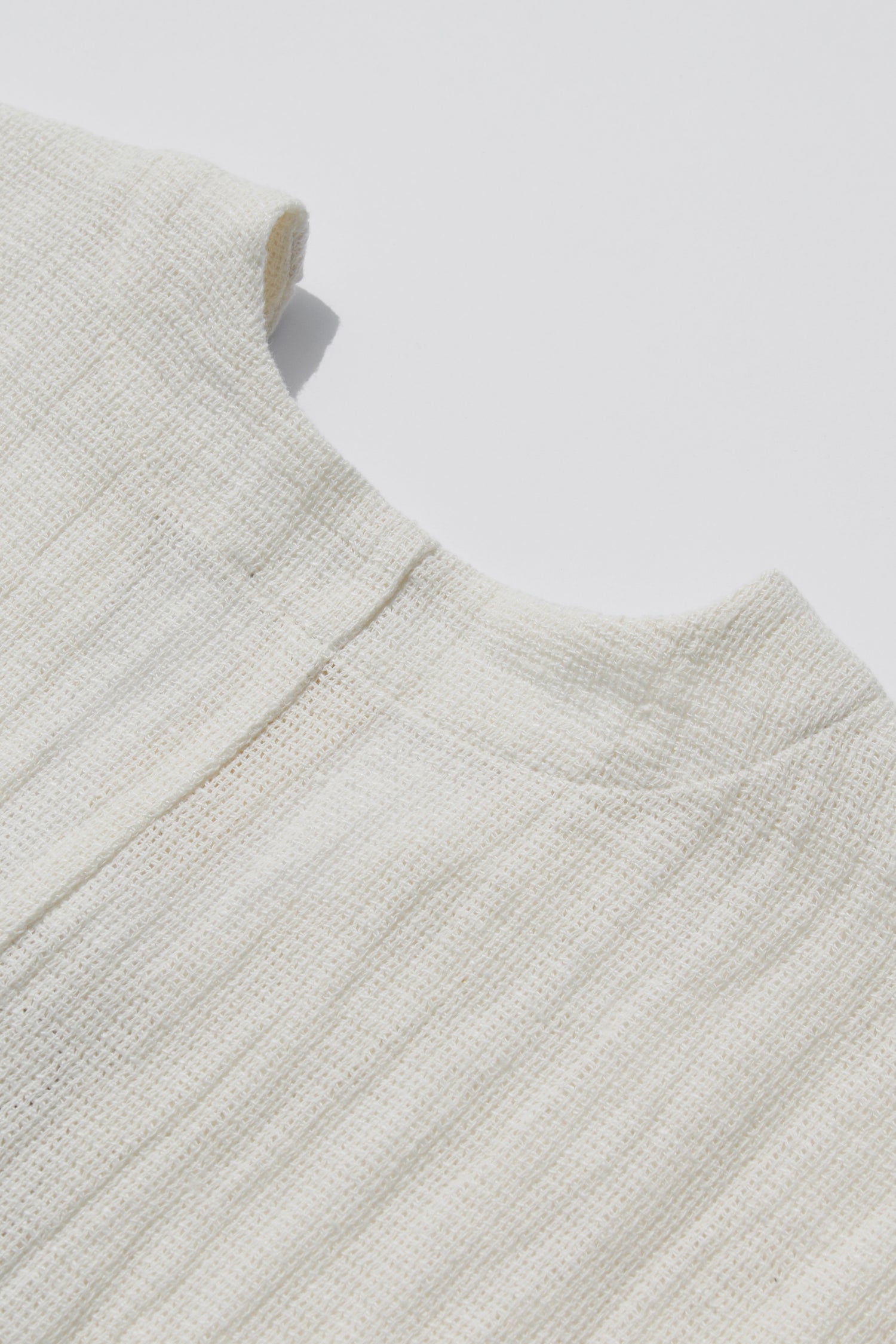 リネンコットンを使用した、パナマメッシュ素材のチュニックシャツ。身幅を広くとったリラクシーなシルエット。長めの着丈でアウターとのレイヤードが楽しめる。後ろ身丈が少し長く、裾に短めのスリットが入ります。同素材のロングシャツもご用意。
