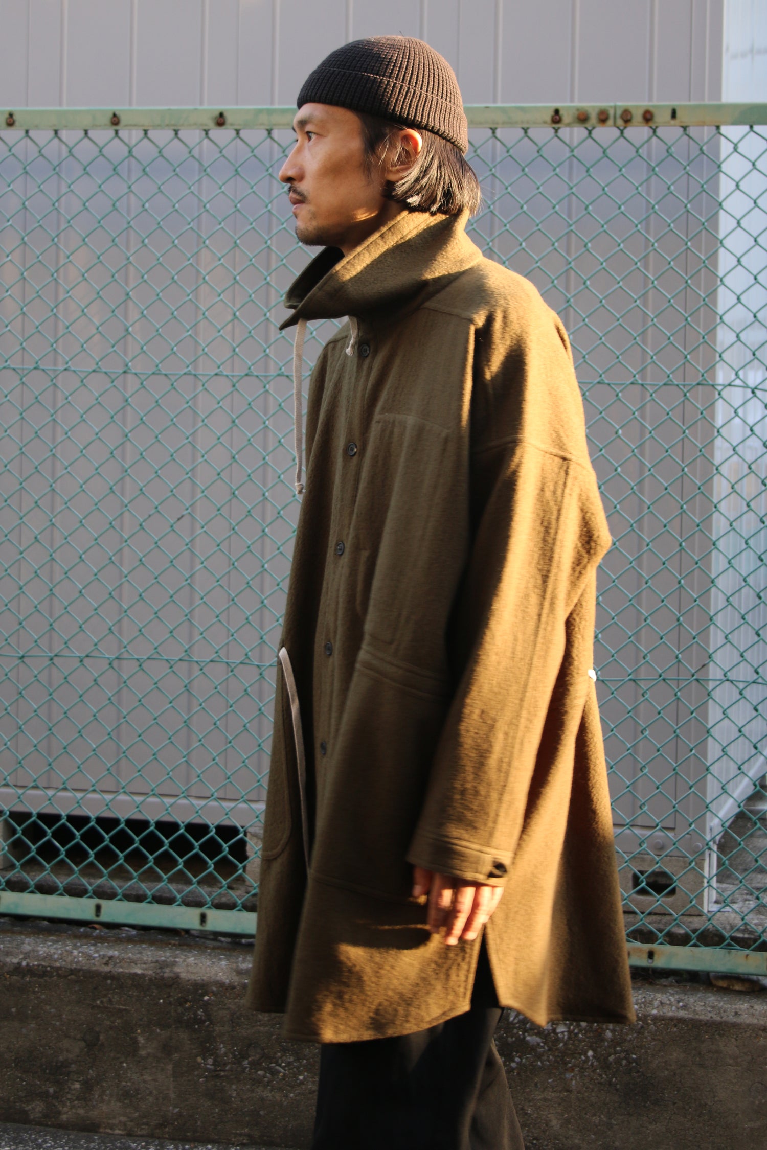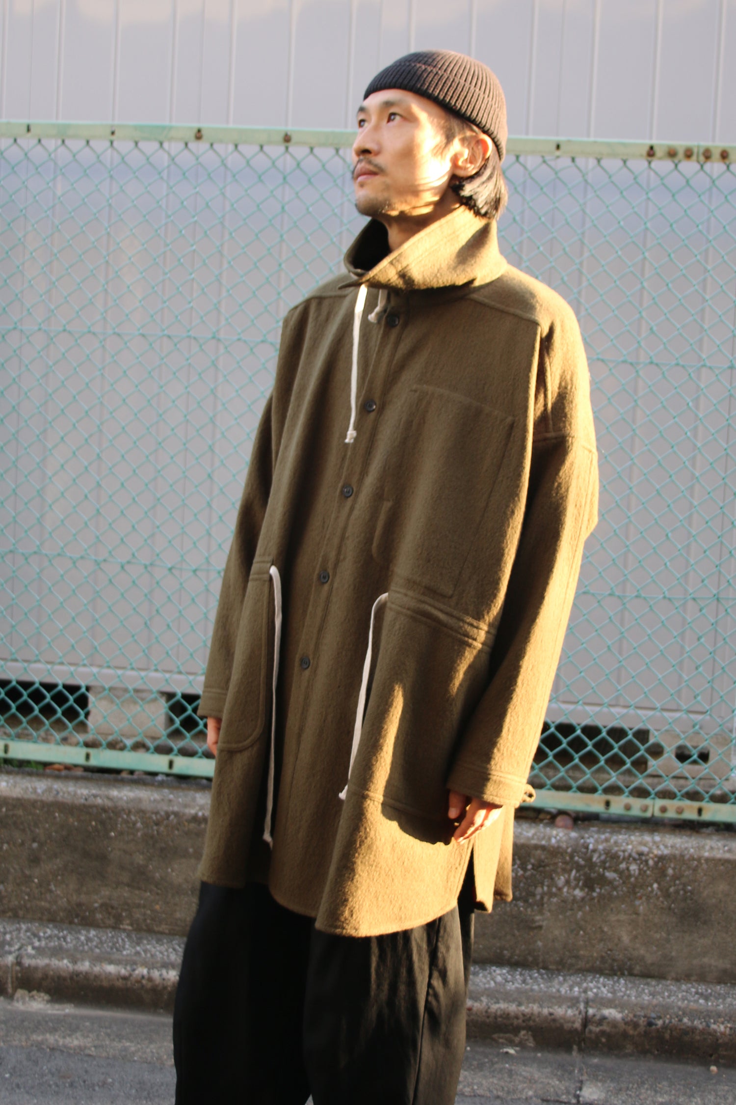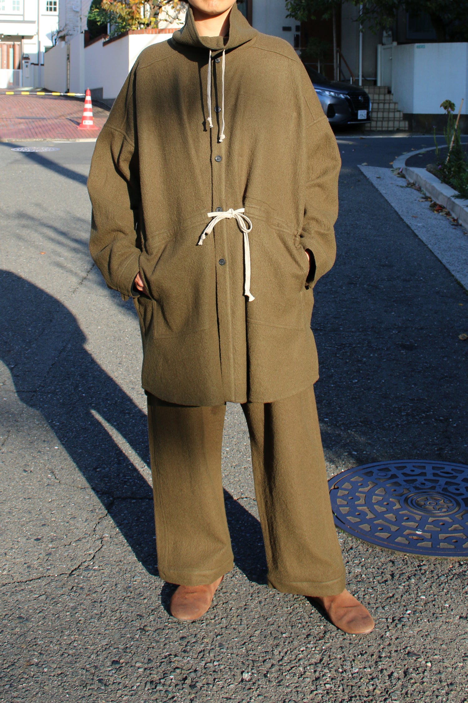 上質なウールツイルを使用したオーバーサイズパーカージャケット。起毛感のあるテディーウールツイル生地で着用時、ふわっとした肌触りが特徴。保温性に優れ、秋冬に最適な素材感。身幅が広く、ボリューム感のあるシルエットに、大きめのパッチポケットが特徴です。内側大ぶりのポケットが独特な配置。襟とウエストのドローコードがアクセントになっております。袖口:アジャストボタンで調節可能。前後差のある身丈にサイドスリット。ナチュラルな色味。同素材のJOGGING TROUSERSとセットアップで着用いただけます。