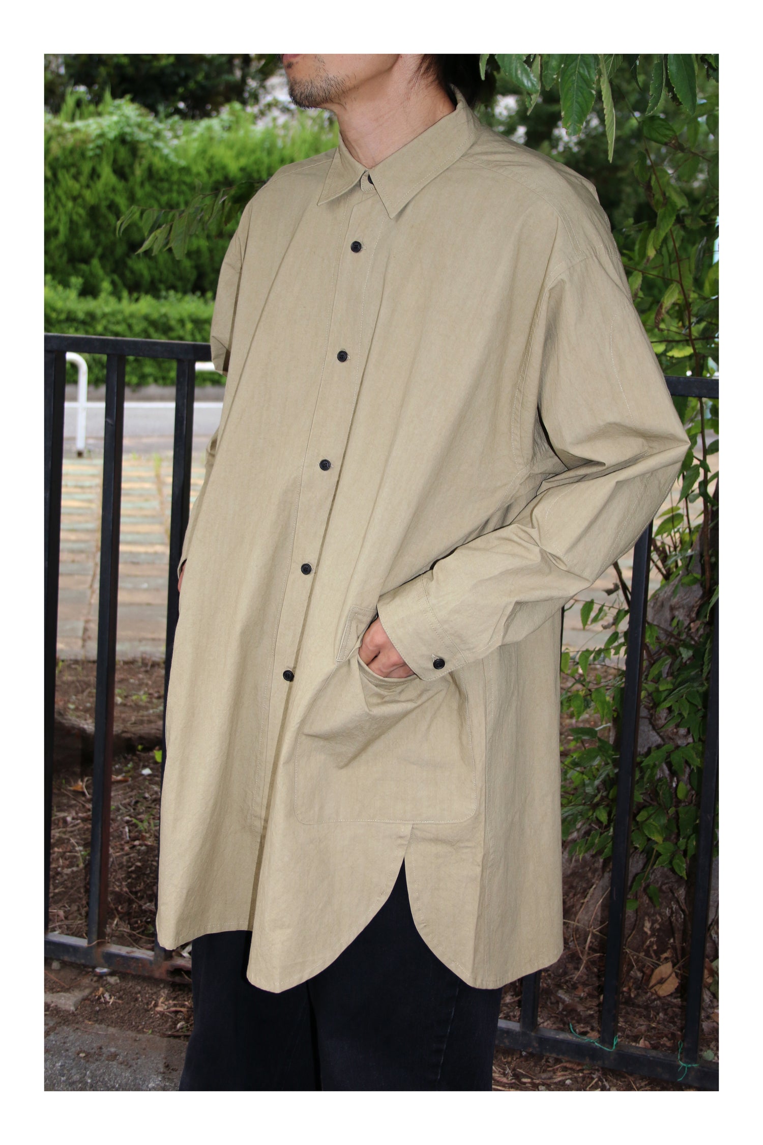 O PROJECT WASHED DENSE CLOTH LONG SHIRT - KHAKI BEIGE