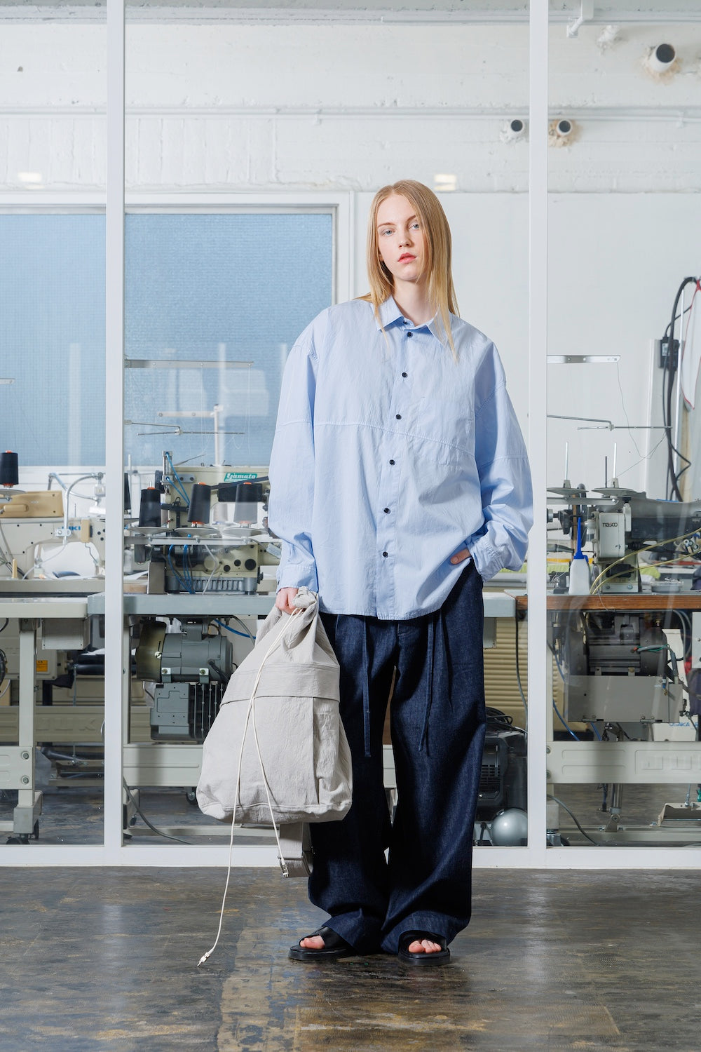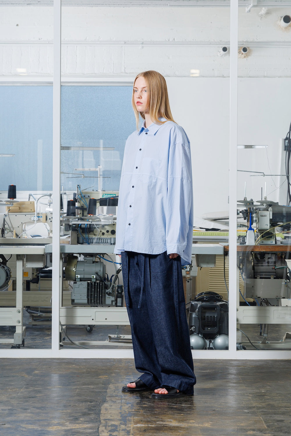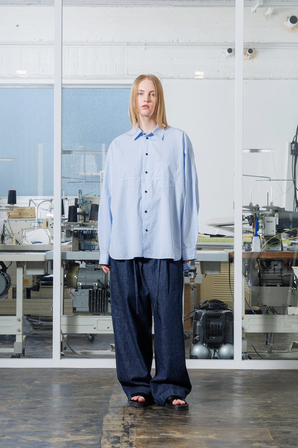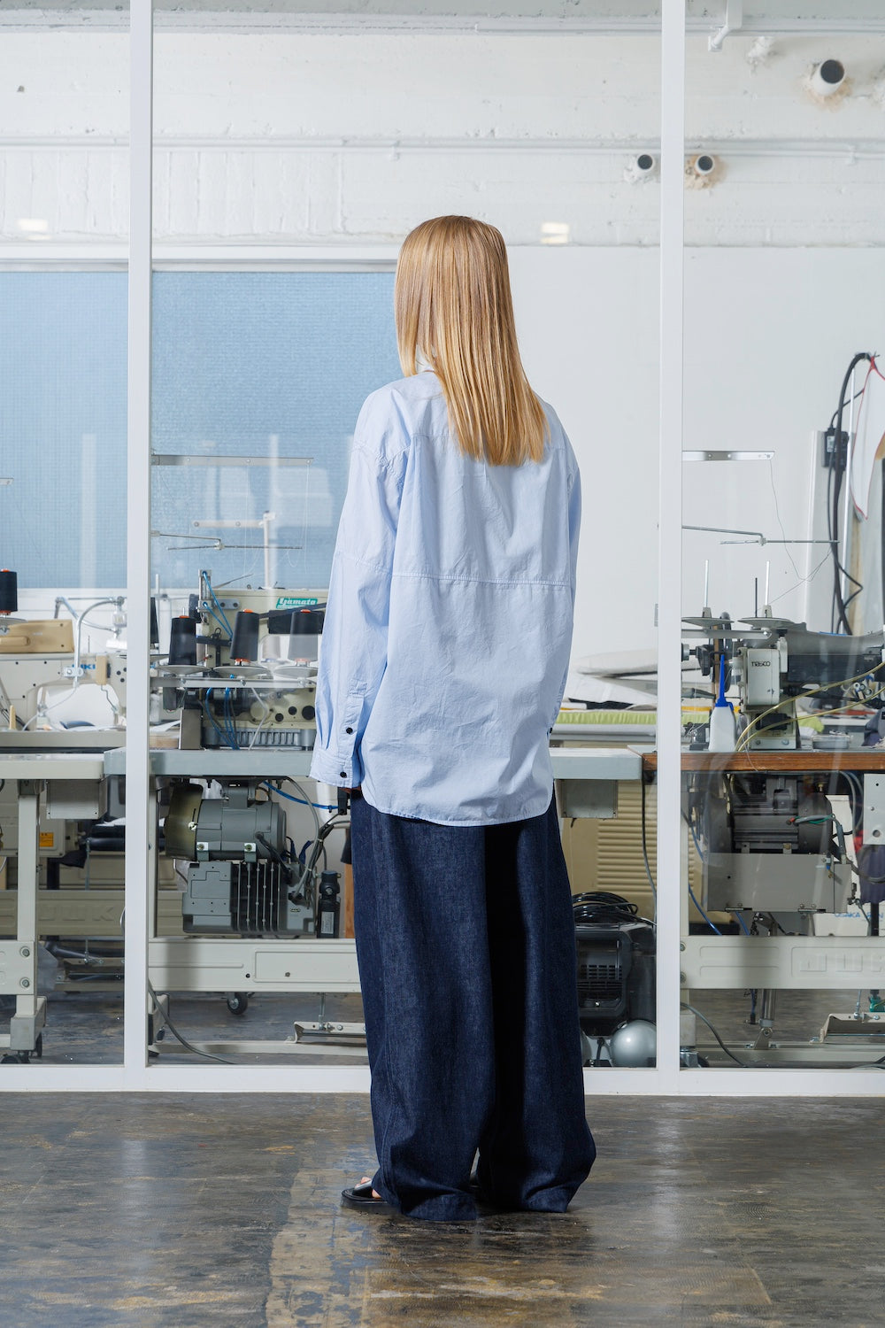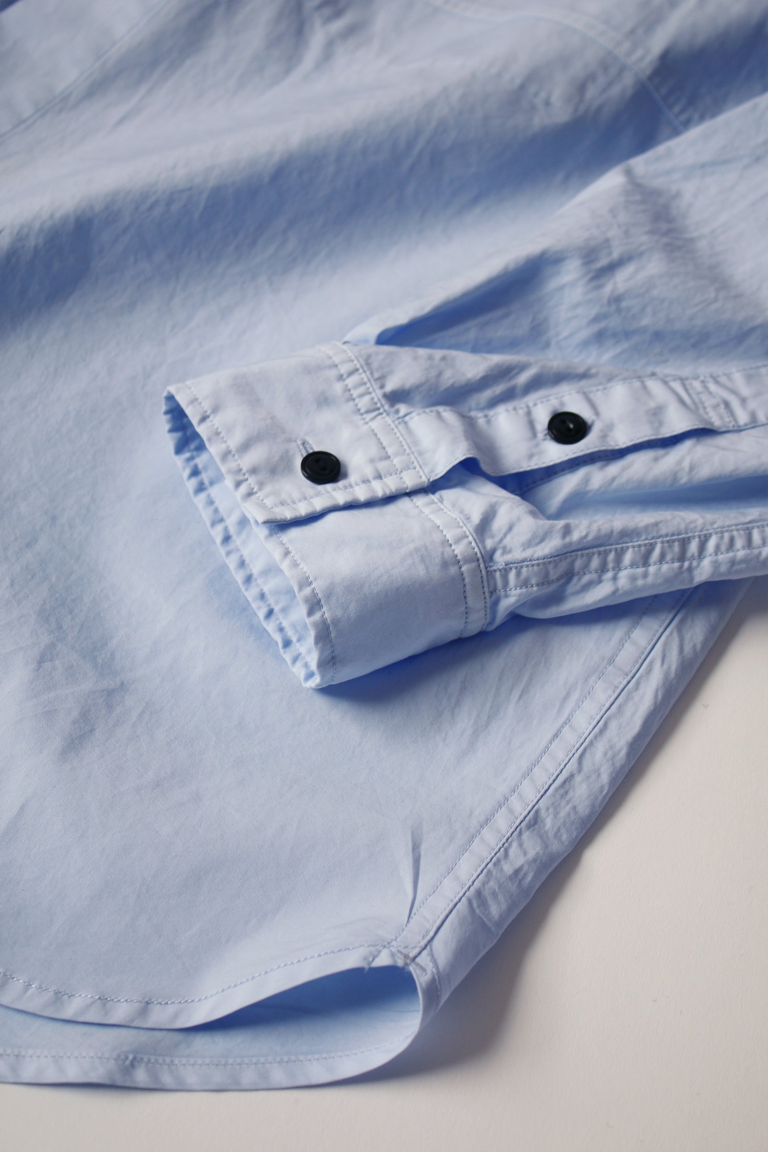 A shirt of sax. The cotton twill is fine and light with supima’s touch where softness led. A classic inner-pocket is on the chest, its style expressed. Garment washed for softness.