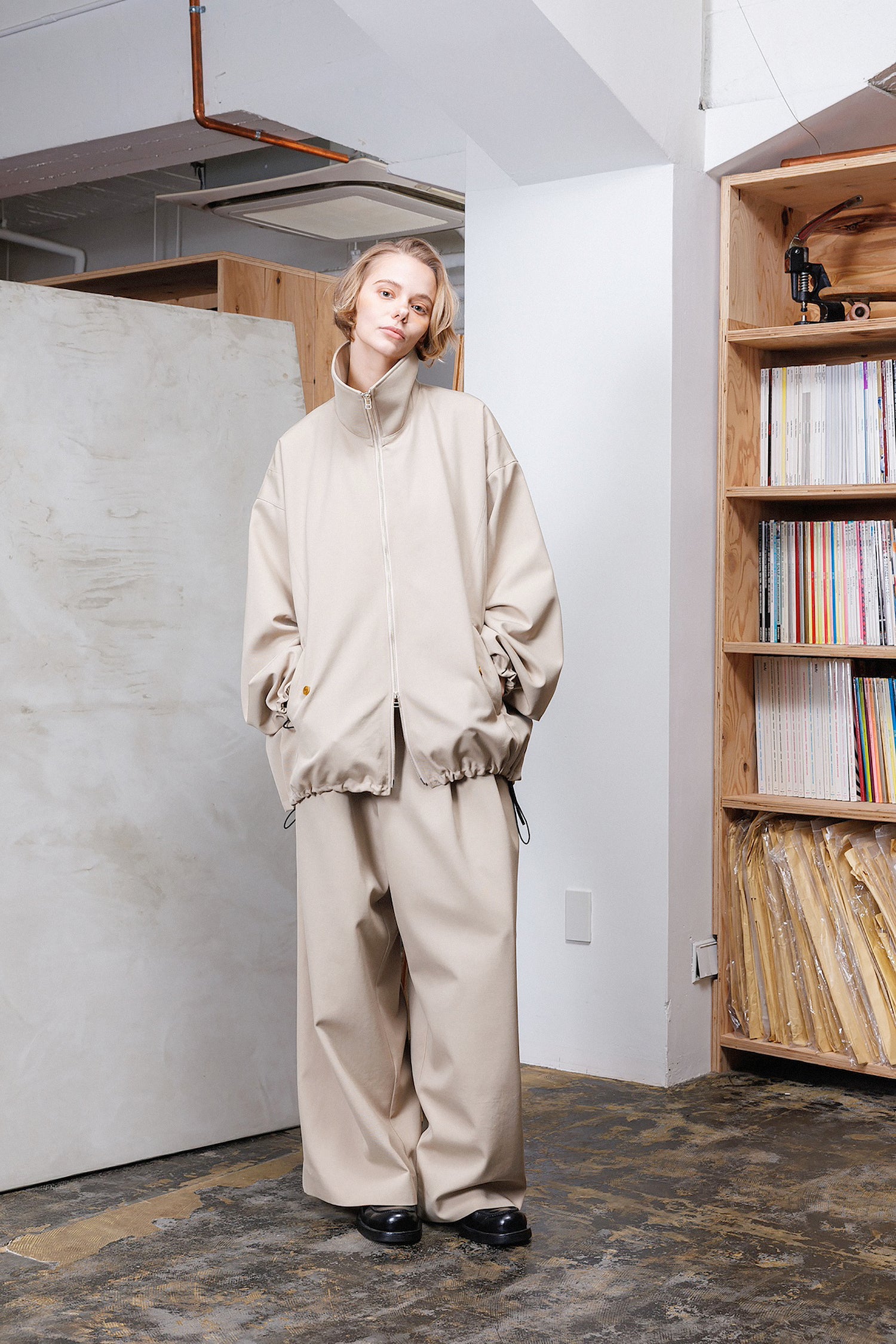 Tucked pants comes with comfortable wool gabardine from Bishu, Aichi. Featuring: quiet beige, clean line, wide legs, and the pockets for things you’ve poked each day.
