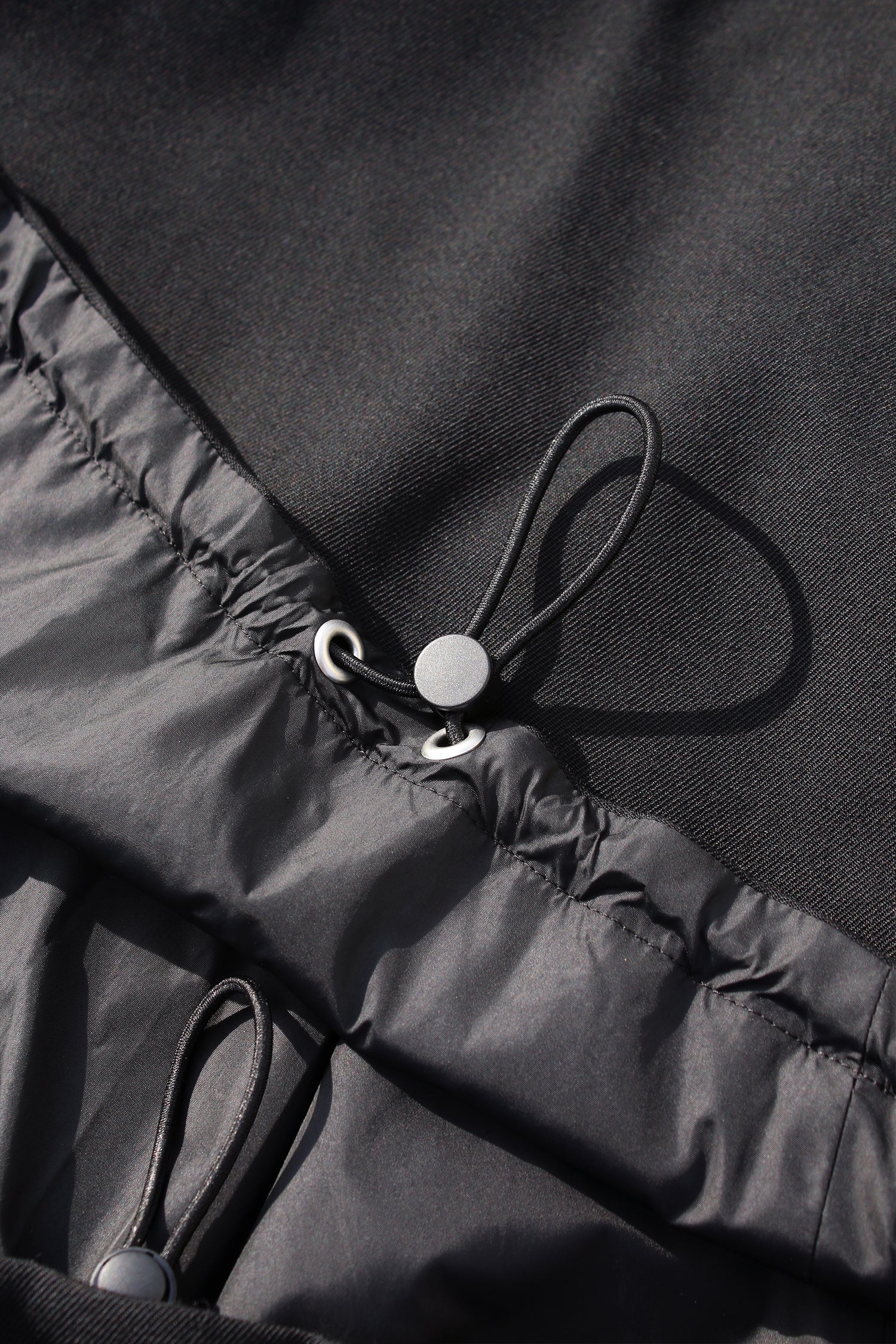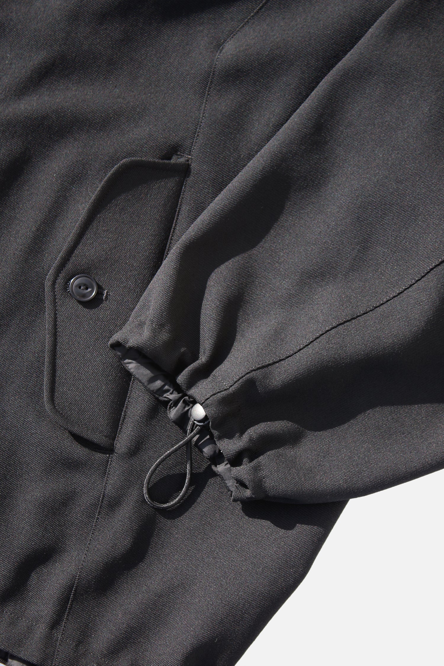 タテヨコ48番双糸で織り上げた尾州産ウールギャバジンを使用したジャケット。適度にハリコシがあり、細かい綾目とサラッとした風合いが特徴です。両サイドにはポケットも付いています。裾と袖口のドローコードによるシルエットの変化もお楽しみいただけます。