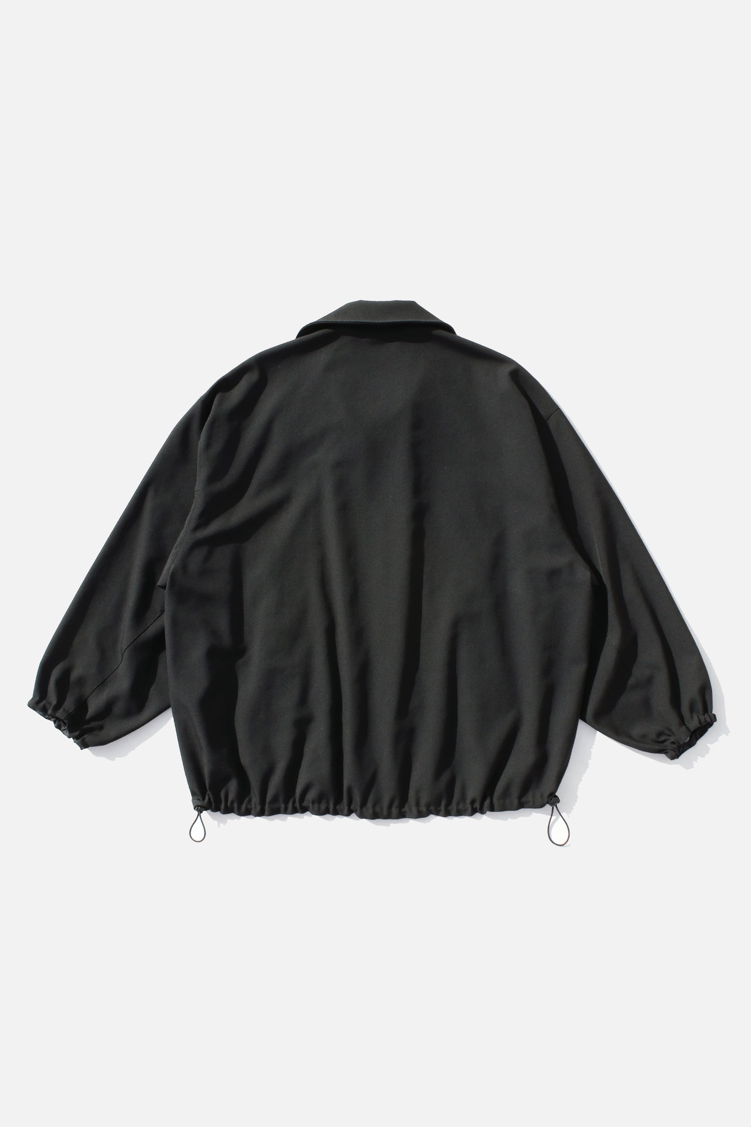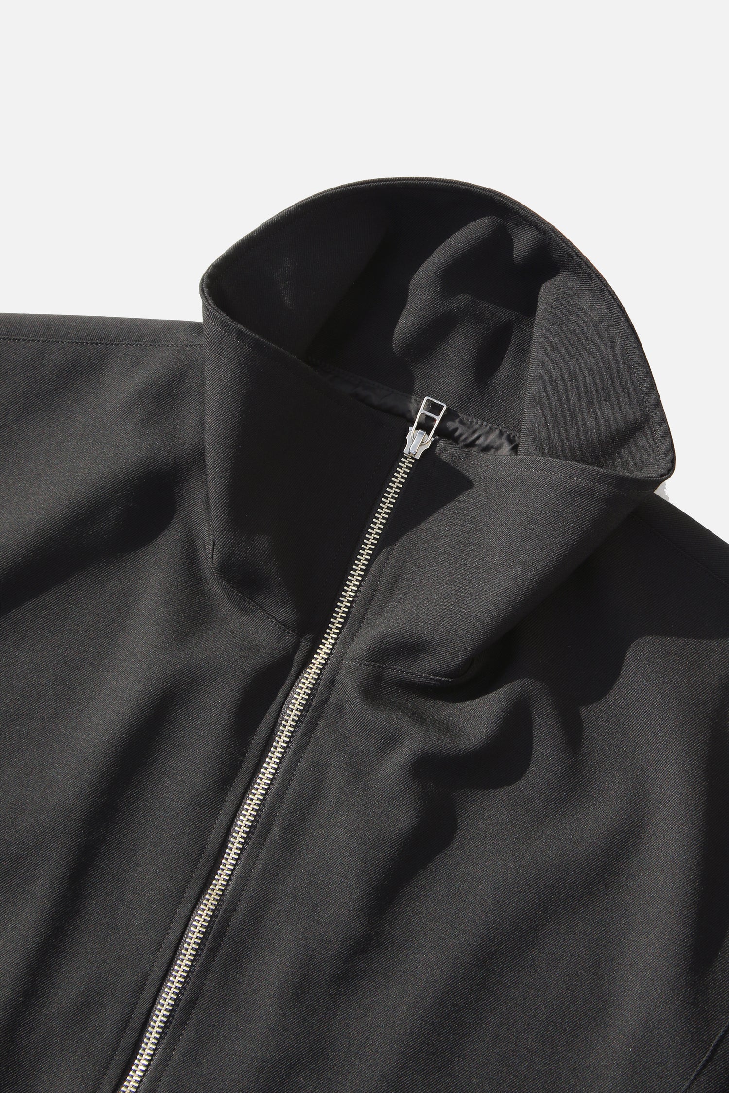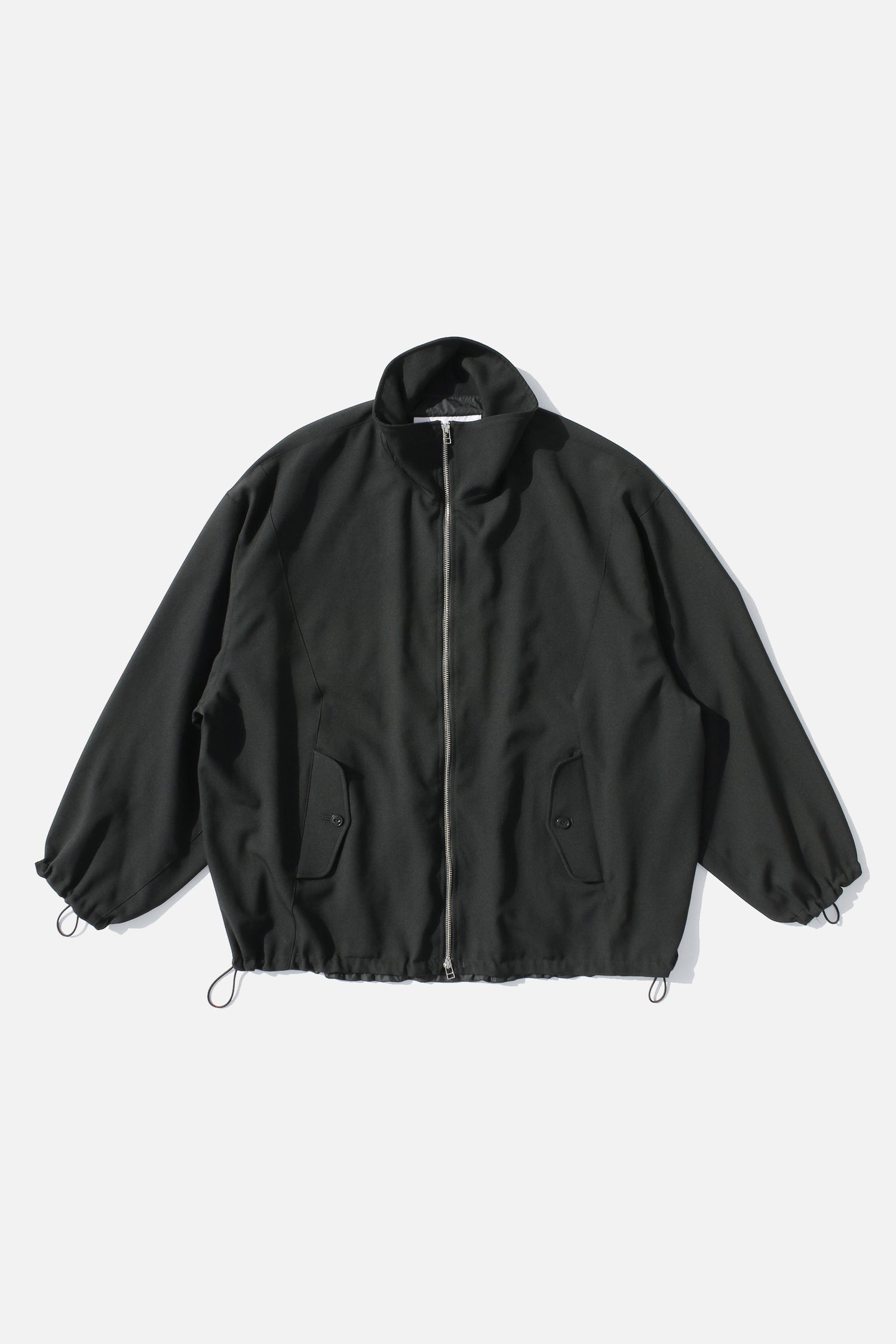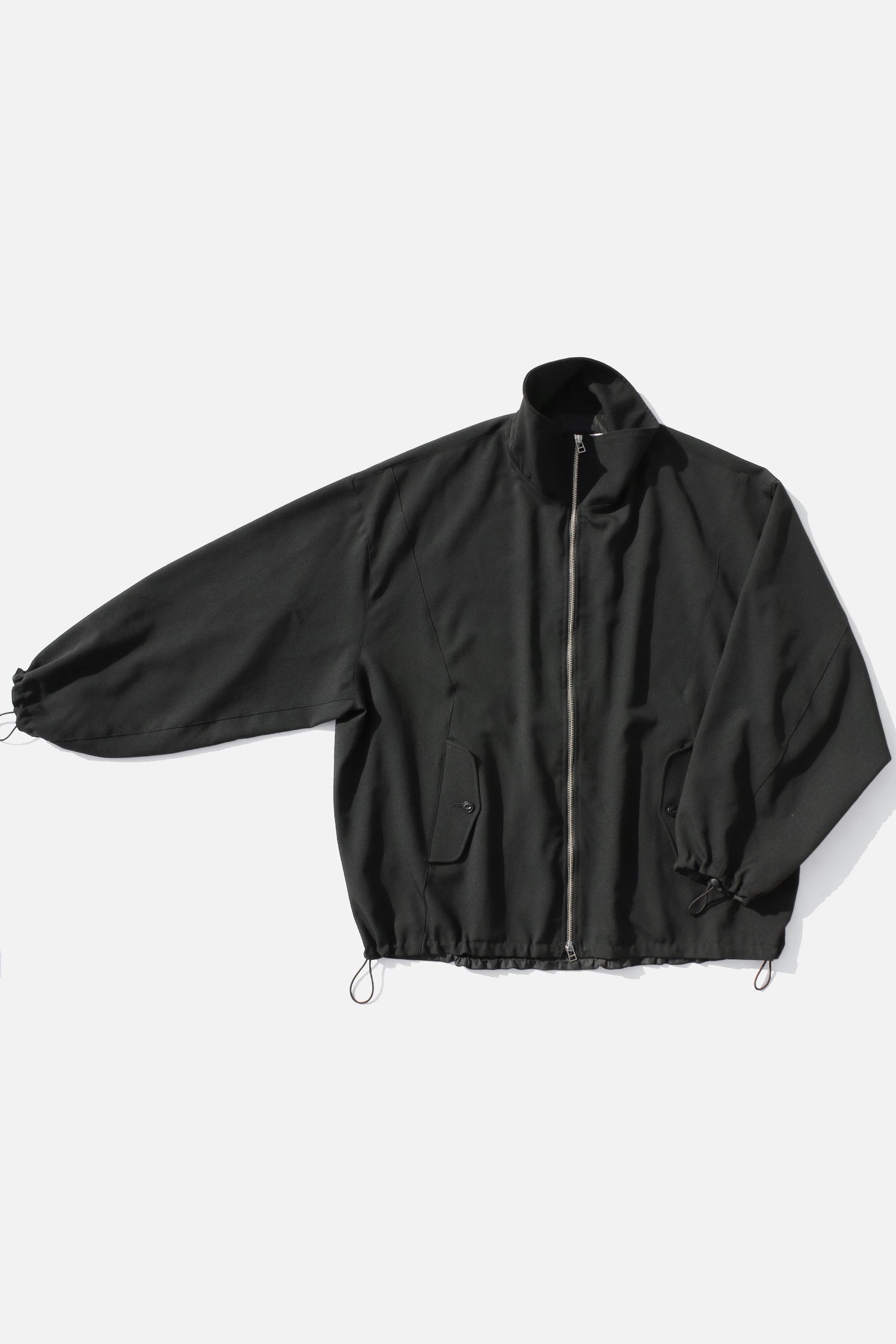 A loose-design zip jacket comes with comfortable wool gabardine from Bishu (the area around Ichinomiya, Aichi). Featuring: beautiful black in the best possible way, silver zipper with double sliders, and elasticated drawcords on cuffs and hem.