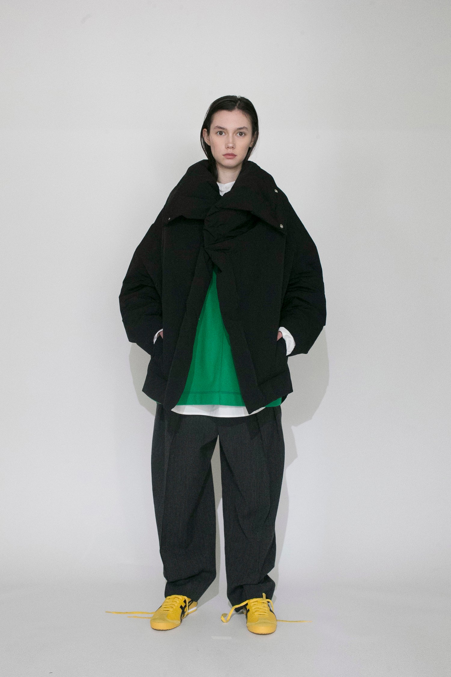 It is a combination of comfort and performance, and an unique jacket for us in need for extra warmth. Crafted from Kawada Down (a leading down suppliers from Japan) keeps you toasty and the slightly wrinkling nylon taslan taffeta outer is characterized by a casual intensity which is light and heat retentive. Featuring large pockets and clever button-closure. For the one shows a penchant for short and warm jacket with a big aesthetic collar.
