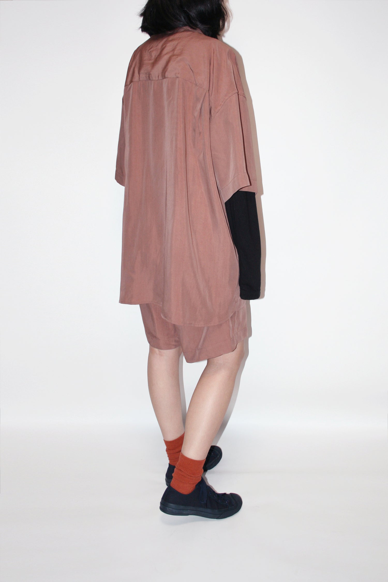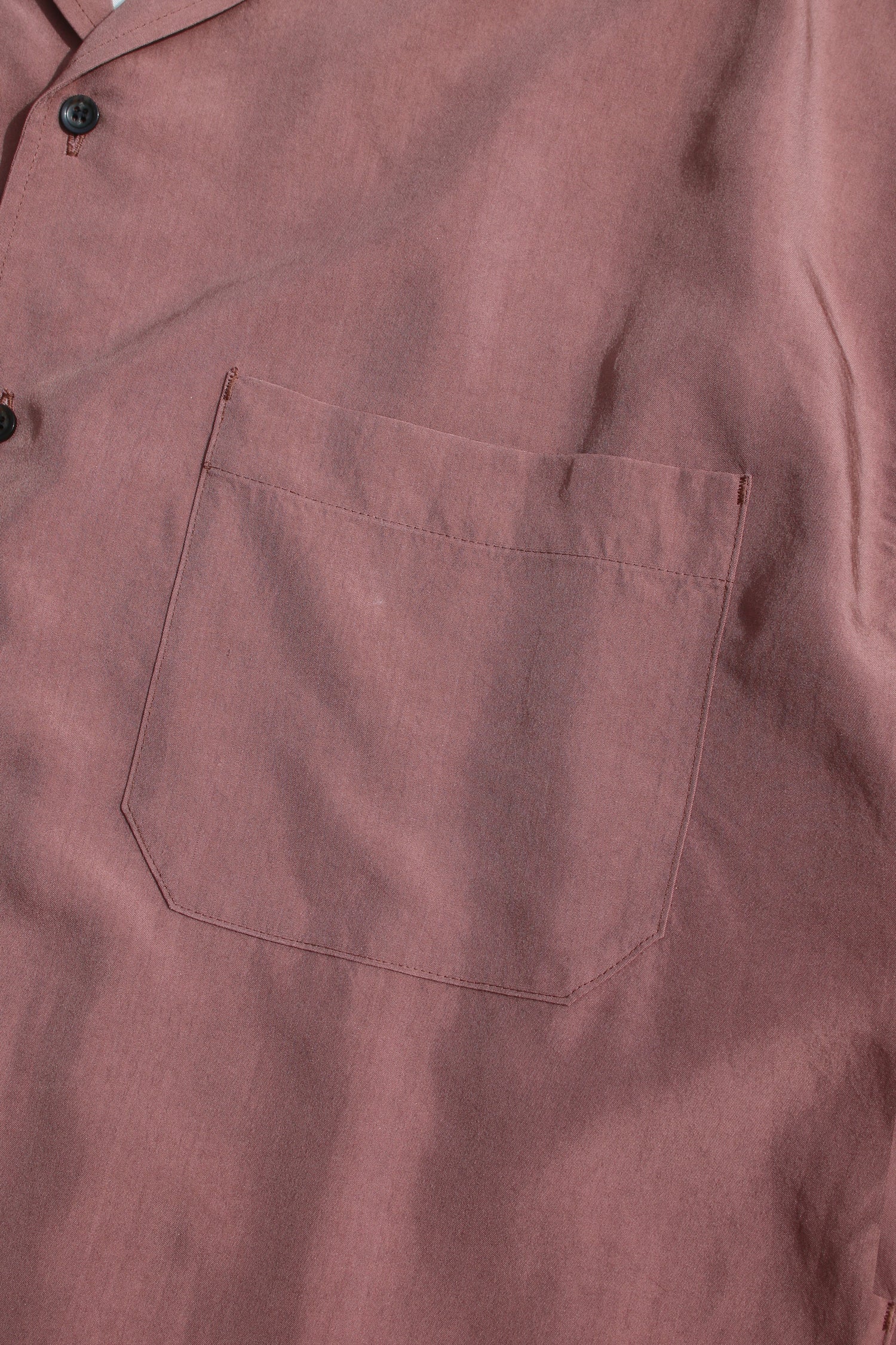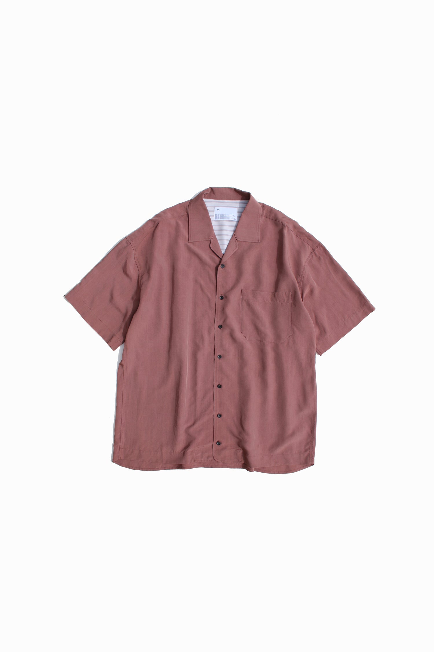 ややゆったりとしたシルエットの開襟半袖シャツ。適度な落ち感とハリ感を持たせた、モダールxレーヨンにタンブラー加工でヴィンテージ感を加えた素材。VOAAOVのワイドモダールイージーショーツ(ピンク、VOSP-H73)とのセットアップ提案。