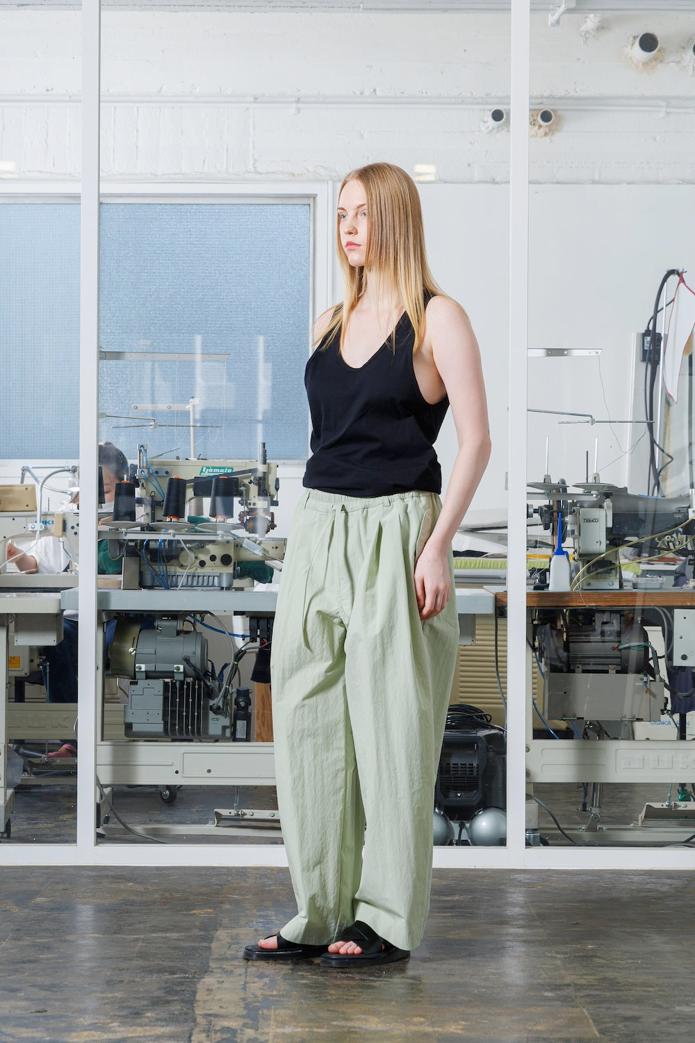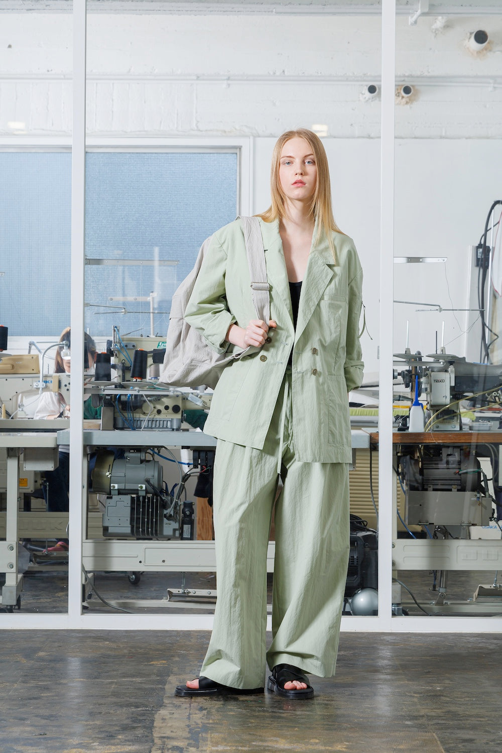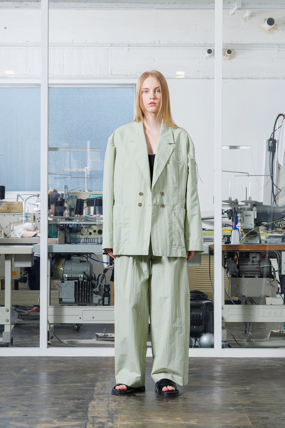 モデル身長: 174cm/着用アイテム: Size 2, LIGHT GREEN.